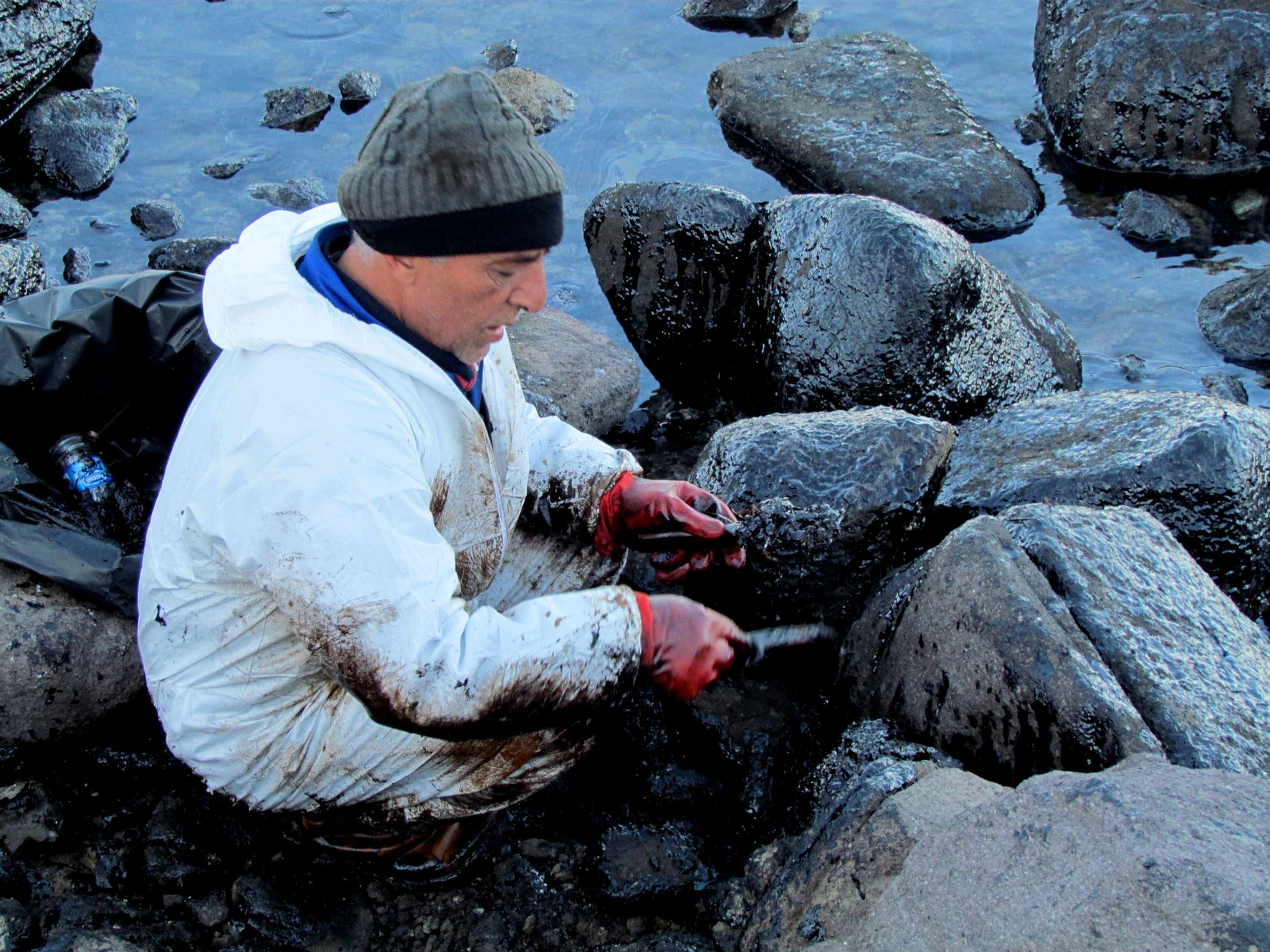 Temizlik ekiplerinin bir bölümü de Paşa Limanı kıyılarındaki taşların arasındaki yakıt artıklarını kazıyarak toplamaya başladılar. Alınan bilgiye göre, taşların arasının temizlenmesinin ardından da 80 derece sıcak su içerisine katılacak solüsyonlarla, tazyikle kayaların üzerine püskürtülerek, yakıtın siyah izleri tamamen temizlenecek.