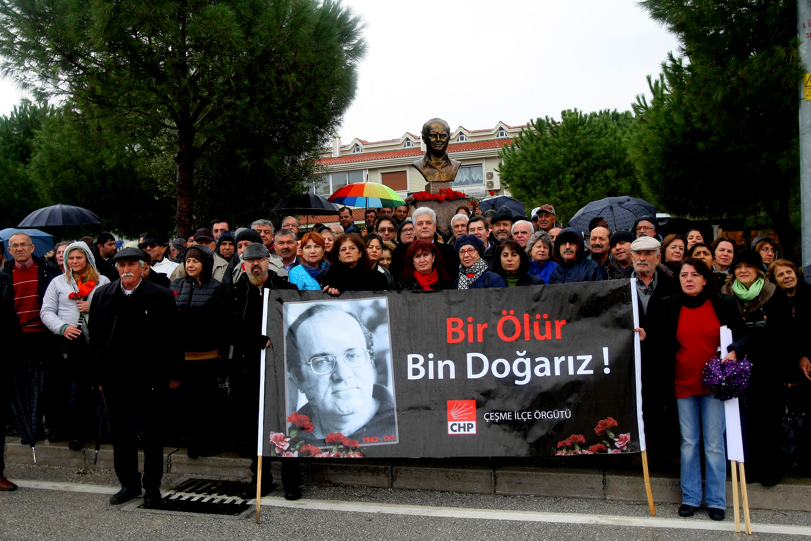 Çeşme'de, düzenlenen törene, Çeşme Belediye Başkanı Muhittin Dalgıç, CHP İlçe Başkanı Ekrem Oran, Atatürkçü Düşünce Derneği Başkanı Veysel Ayhan, Pir Sultan Abdal Kültür Derneği Çeşme Şube Başkanı Sedat Mutlu, Çağdaş Yaşamı Destekleme Derneği Çeşme Şubesi Başkanı Hamide Bal, Çorumlular Yardımlaşma ve Dayanışma Derneği Başkanı Selahattin Uysal, ÇEŞKA Başkanı Berna Güler ve çok sayıda vatandaş katıldı.