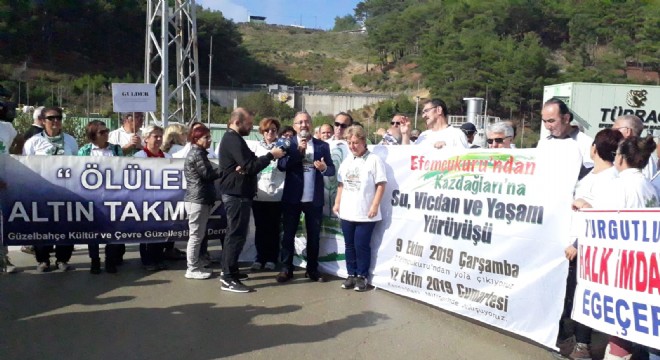 Bu sabah Konak'ta, İzmir Büyükşehir Belediyesi önünde toplanan çevre örgütleri ve çevreciler, Efem Çukuru'ndaki maden işletmesi önünde protesto gösterisi yaptılar.