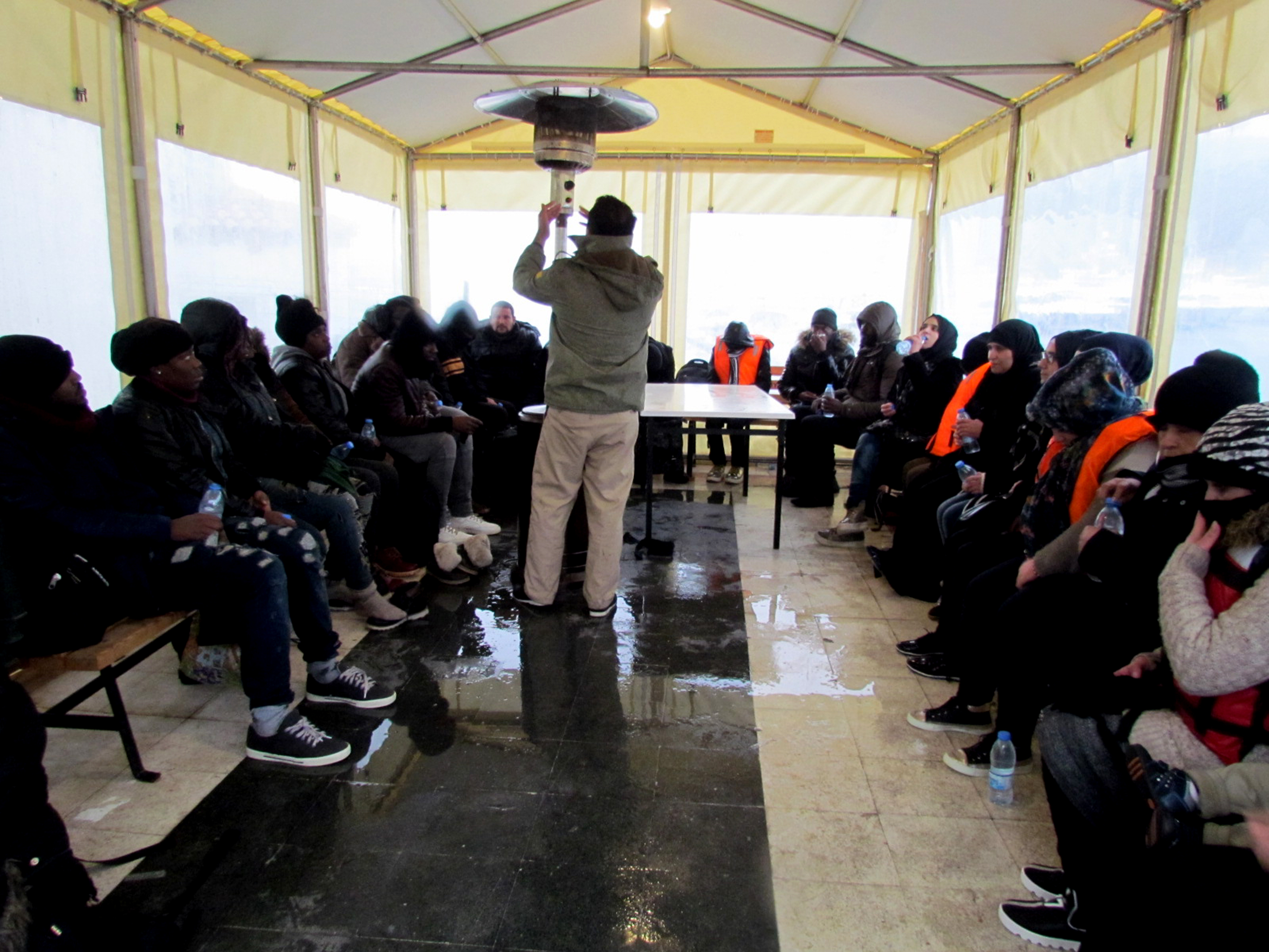 Aralarında küçük yaşta çocukların ve yaşlı kadınların da bulunduğu, çoğunluğu Suriyeli, Afganistan, Irak, İran, Kongo ve Kamerun uyruklu oldukları belirlenen kaçak göçmenler, Çeşme iskelesi'ndeki çadırda işlemlerinin tamamlanmasını beklerken, Sahil Güvenlik ekipleri, üşümemeleri için tüplü soba yaktılar.
