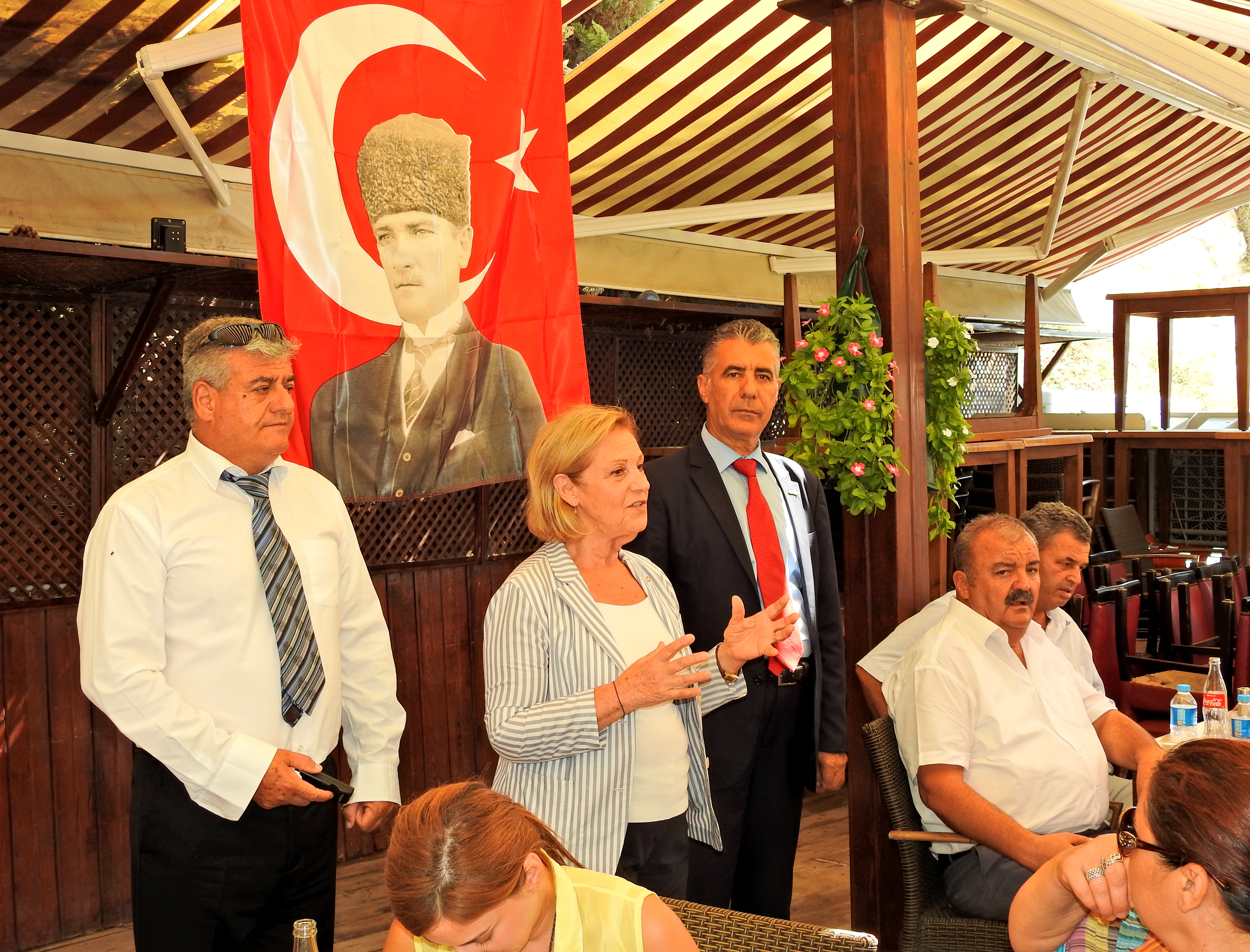 "Bizleri adam yerine koyup, böyle güzel bir ortama taşıyan ADD Çeşme Şubemize ve onun değerli Başkanı Veysel Ayhan'a bütün kalbimizle teşekkür ediyoruz. Hem kocasının hem kendisinin yazılarını yıllardır okuduğumuz saygıdeğer ADD Genel Başkanı Tansel Çölaşan'a da bu yemeğe katıldığı için çok teşekkür ederiz."