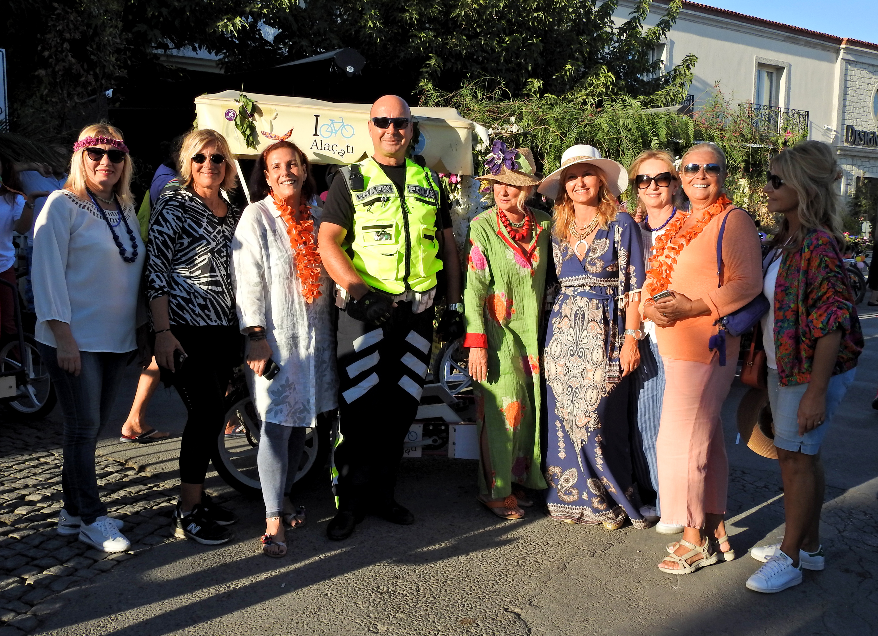 24 Eylül Pazar günü Alaçatı'da gerçekleştirilen, organizasyonunu Zeynep Erdem'in yaptığı etkinliğe yaklaşık 50 süslü kadın, süsledikleri bisikletleri ile katıldı.