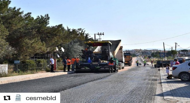 İZSU tarafından yapılan, Çeşme'nin ekonomik ömrünü doldurmuş su şebekesinin yenilenmesi çalışmasının 1. etabında, Ildır'dan İstanbul Dağı deposuna kadar yapılan kazılar sırasında bozulan yolda, sıcak asfalt çalışması gece gündüz devam ediyor.