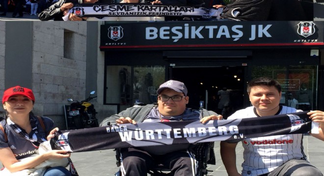 Çeşme Kartalları Beşiktaşlılar Derneği Başkanı Mesut Karaca, Torbalı'da yaşayan Beşiktaş sevdalısı yürüme engelli Hakan Köken'in, Vodafone Park'ta Beşiktaş maçı izleme hayalini, BW Stutgart Derneği Başkanı Burak Girgin ile işbirliği yaparak gerçekleştirdi.