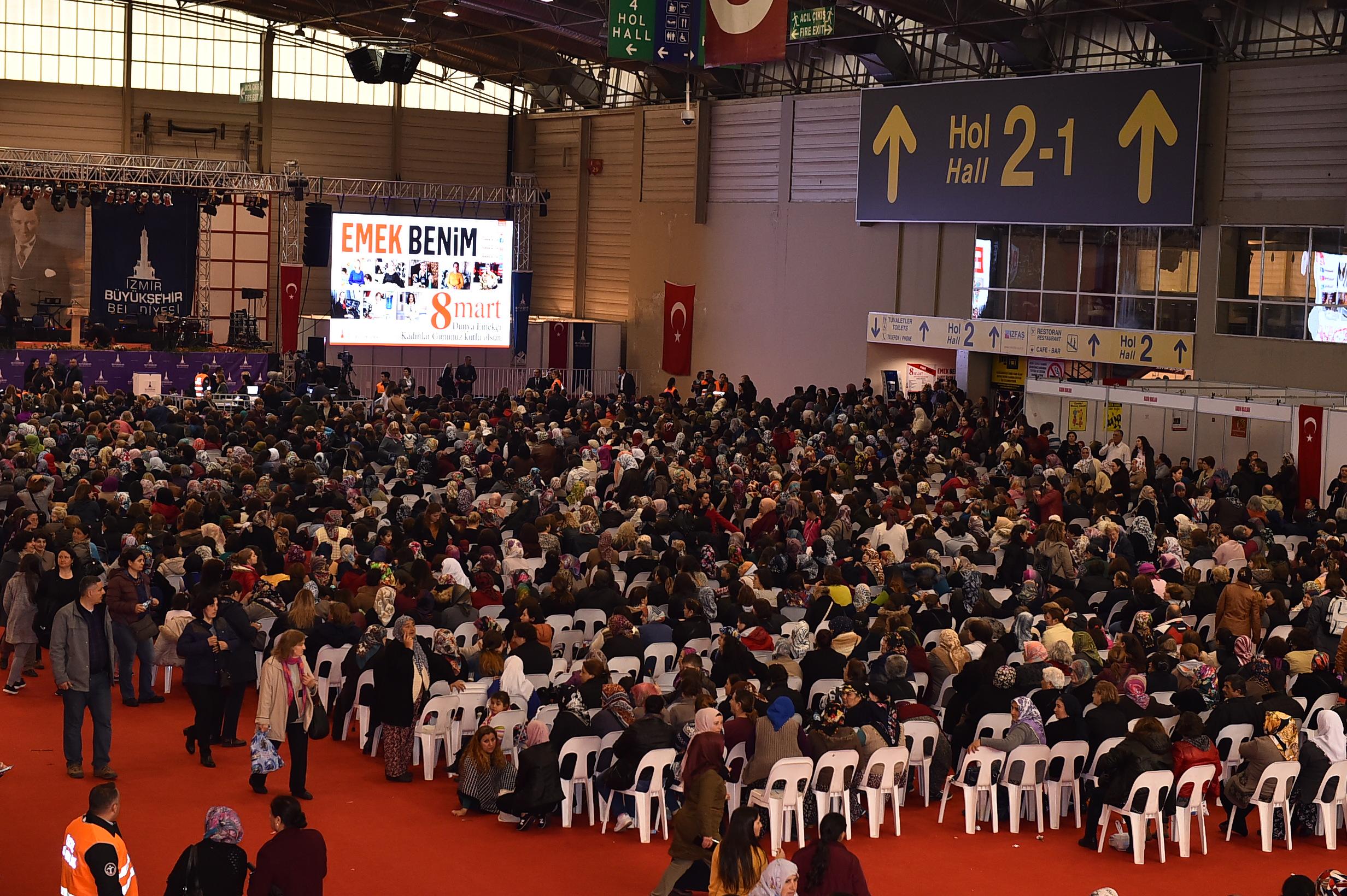 İzmir Büyükşehir Belediyesi’nin “Dünya Emekçi Kadınlar Günü” etkinlikleri kapsamında bu yıl 8.'sini düzenlediği “Kadın Festivali” Kültürpark 3 No'lu Hol'de, binlerce İzmirli kadının katılımıyla gerçekleşti. 5 güne yayılan etkinliklerin ilk gününde 6 bin 500 kişilik oturma alanının tamamı doldu. Renkli görüntüler ve ilginç gösterilere sahne olan festivalin açılış törenine İzmir Büyükşehir Belediye Başkanı Aziz Kocaoğlu, eşi Dr. Türkegül Kocaoğlu ve CHP İstanbul Milletvekili Şafak Pavey ile birlikte ilçe belediye başkanları ve eşleri de katıldı.
