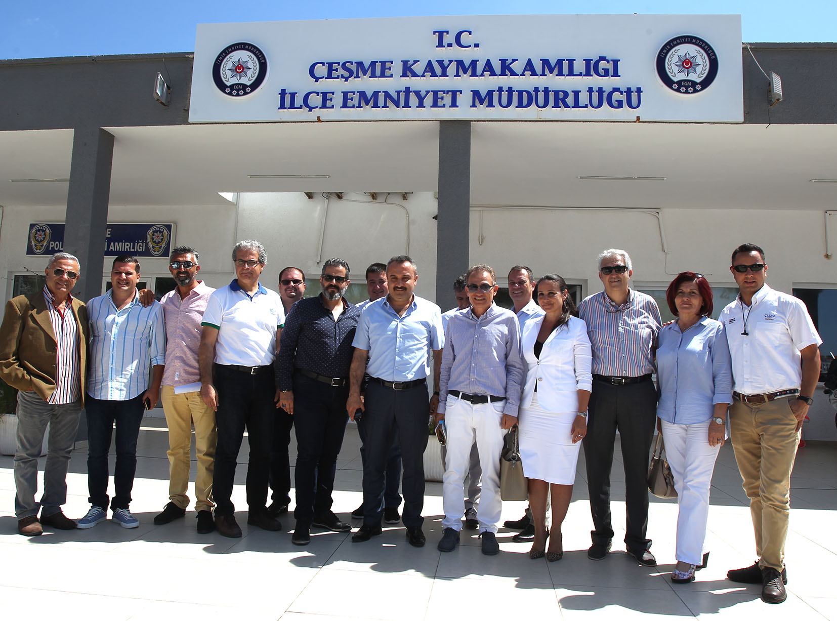 Çeşme Emniyet Müdürü Gürcan Alev'i de ziyaret eden ÇEŞTOB yöneticileri, Çeşme emniyet teşkilatının çalışmalarından çok memnun olduklarını dile getirdiler. İlçe Emniyet Müdürü Gürcan Alev de seçimlerin bitmesiyle sezonun hareketleneceğini belirterek, "Hafta sonundan itibaren takviye ekiplerimiz geliyor. Çevik kuvvet, narkotik, kaçakçılık, trafik, organize, asayiş, yunus olmak üzere 170'e yakın takviye polis gelecek. Takviye gelecek ekiplerle, Çeşme'de huzuru ve asayişi tam olarak sağlayacağız. Hedefimiz sıfır olay. Çeşme gişeler, Alaçatı gişeler ve Şahin Tepesi olarak adlandırılan eski Çeşme yolu girişinde 24 saat denetimler yapılacak. Bu denetimlerden lütfen rahatsız olmayın. Amacımız herkesin huzur içinde tatilini yapabilmesi. Denetimleri Çeşme'nin huzuru için yapıyoruz" şeklinde konuştu.