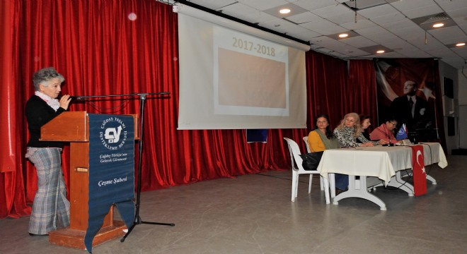 Genel Kurul toplantısının açılış konuşmasını yapan Dernek Başkanı Hamide Bal, Türkan Saylan Eğitimevi'ni hem ofis, hem de eğitim amacıyla kullandıklarını, ancak yetersiz büyüklükte olması nedeniyle aynı anda 2-3 etkinlik yapamadıklarını anlattı. Derneklerinin 142 üyesi olduğunu belirten Bal, "Ggüzel yurdumuz; maalesef adeta bir uçurum kıyısına getirilmek istenmekte, işsizliğe, açlığa, yoksulluğa, savaşa, ölümlere, doğanın ve çevremizin talanına mahkum bırakılmaktadır. Kadınlarımızın ve çocuklarımızın geleceğinin karartılmasına engel olmalıyız. İçinde bulunduğumuz olumsuz şartlara karşı olduğumuz için bizleri cezalandıran, yasaklayan, soruşturmalar açan, bizleri teröristlerle aynı kefeye koyan zihniyete 'hayır' diyoruz. İnsan haklarından, demokrasiden, Cumhuriyet'ten yana olduğumuzu bir kez daha haykırıyoruz. Bütün dünyanın büyük bir lider olarak gördüğü, tarihçi ve profesörlerin kendisine, çok zeki anlamına gelen gri kurt dedikleri, Cumhuriyet'in kurucusu Mustafa Kemal Atatürk'ün izindeyiz. O'nun yolundan gitmeye devam edeceğiz" diye konuştu.