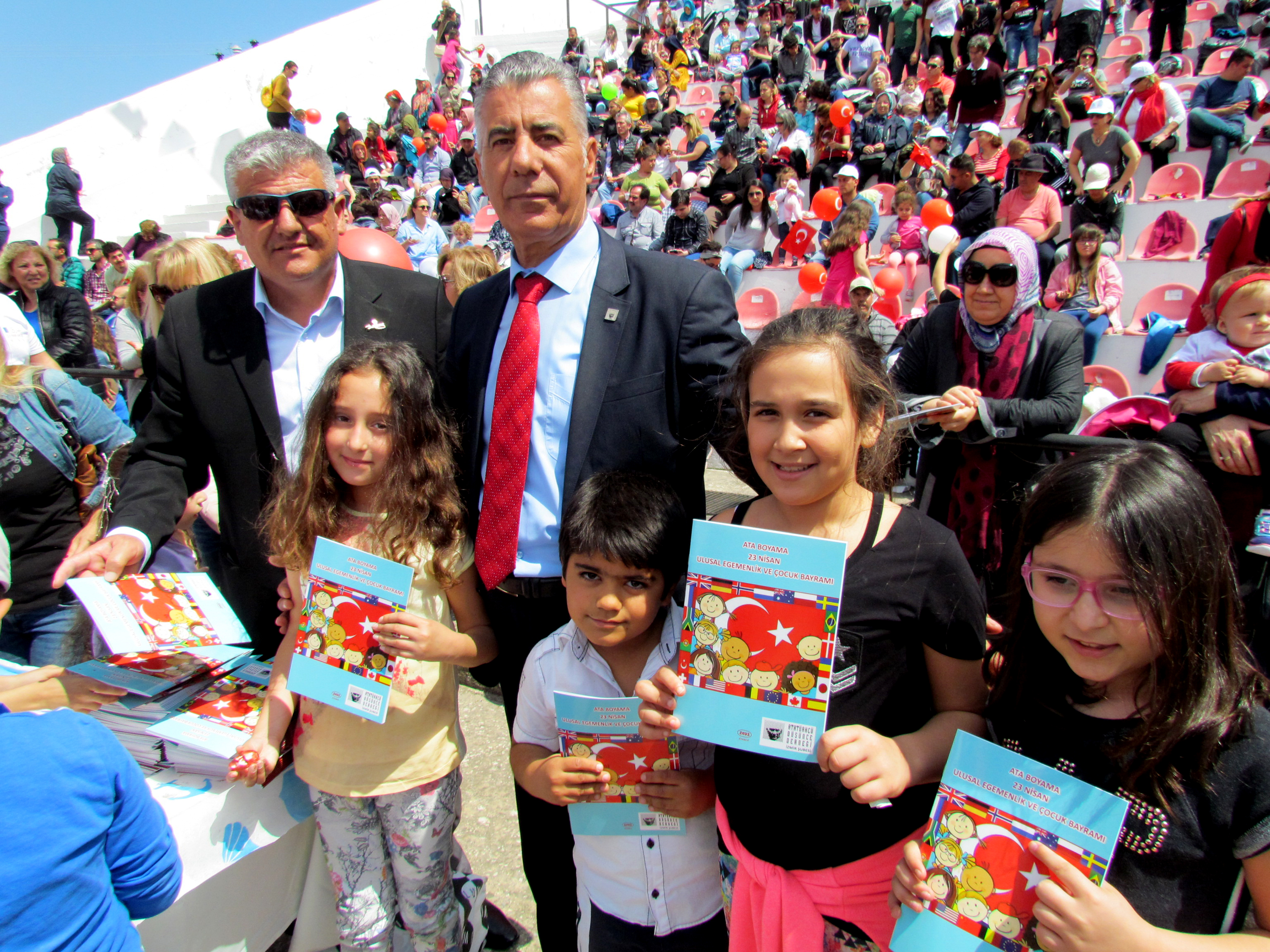 Öte yandan Atatürkçü Düşünce Derneği Çeşme Şubesi Başkanı Veysel Ayhan ve Başkan Yardımcısı Mehmet Bilgiç, çocuklara boyama kitapları ve kitap ayraçları dağıttılar. Boyama kitapları ve ayraçlar kısa sürede çocuklar tarafından kapışıldı.