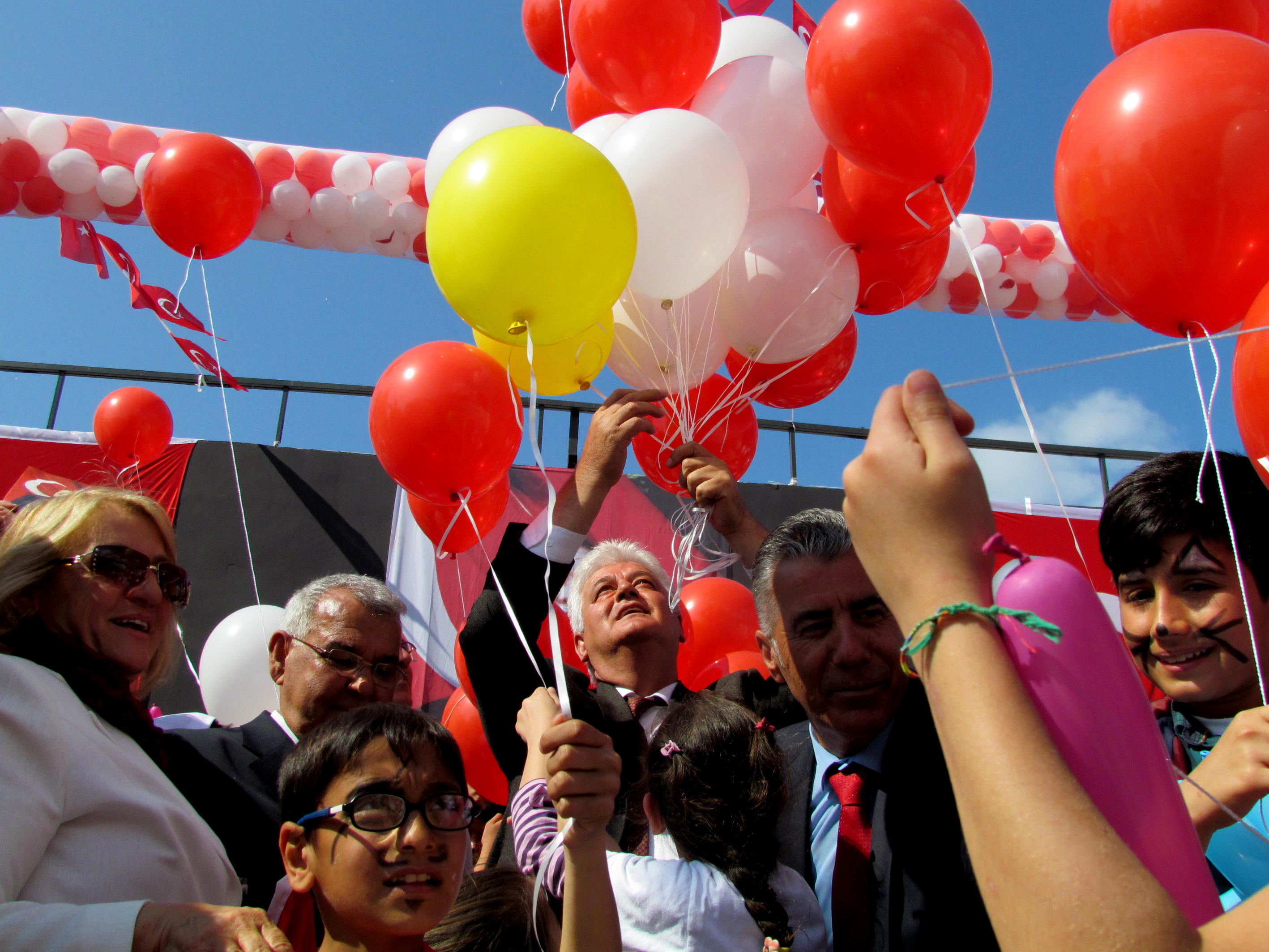 Konuşmaların ardından okul öğrencileri çeşitli gösteriler sundular. Çizgi film kahramanlarının kostümlerini giyen animatörler, çocukların ilgi odağı olurken, aileler, animatörlerle çocuklarının fotoğraflarını çektiler. Amfi tiyatroda kurulan çeşitli stantlarda çocuklara, dondurma, patlamış mısır, saray macunu ve pamuk şeker ikram edildi. Palyaçolar, çocukların yüzlerini yüz boyaları ile boyarken uzun kuyruklar oluştu. Küçük Atatürk masklarını boyama etkinliğine de çocuklar büyük ilgi gösterdiler.