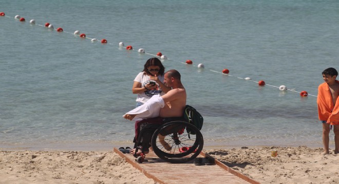 Dünyaca ünlü Ilıca Plajı'na Çeşme Belediyesi tarafından yapılan rampayla, engelli vatandaşların denize ulaşabilmesi sağlandı.