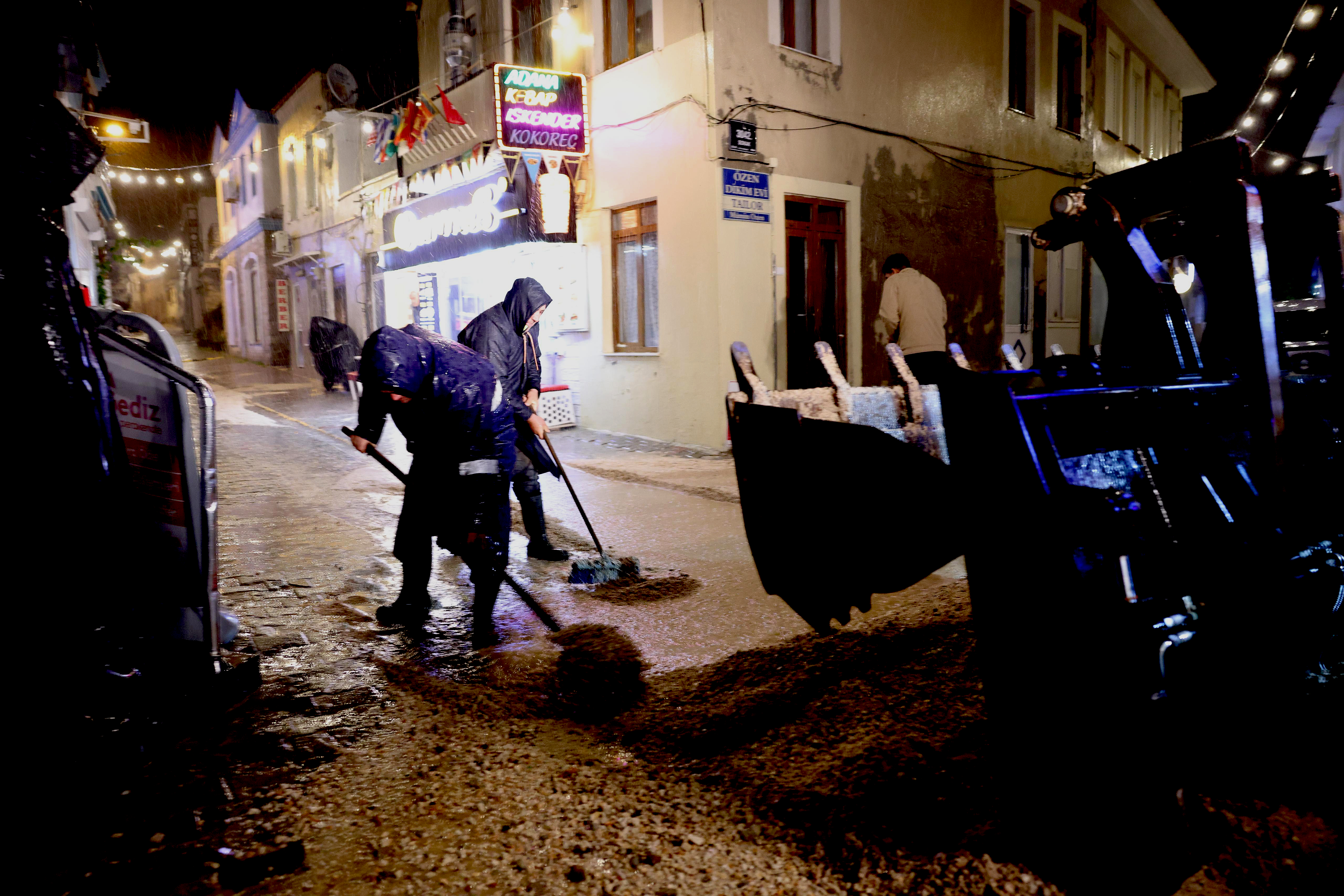 Çeşme'nin birçok mahallesinde etkili olan sağanak yağmur sonrası Çeşme Belediyesi'ne bağlı birimler sahaya inerek çalışmaya başlaldılar.