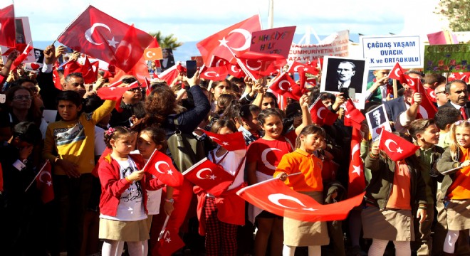 Cumhuriyet Meydanı'na kadar süren yürüyüşün ardından, Çeşme Kaymakamı Hacı Mehmet Kara, Garnizon Komutan Vekili Astsubay Kıdemli Başçavuş Engin Keçeci ve Çeşme Belediye Başkanı Muhittin Dalgıç, meydanda toplanan öğrencilerin ve vatandaşların Cumhuriyet Bayramı'nı kutladı.