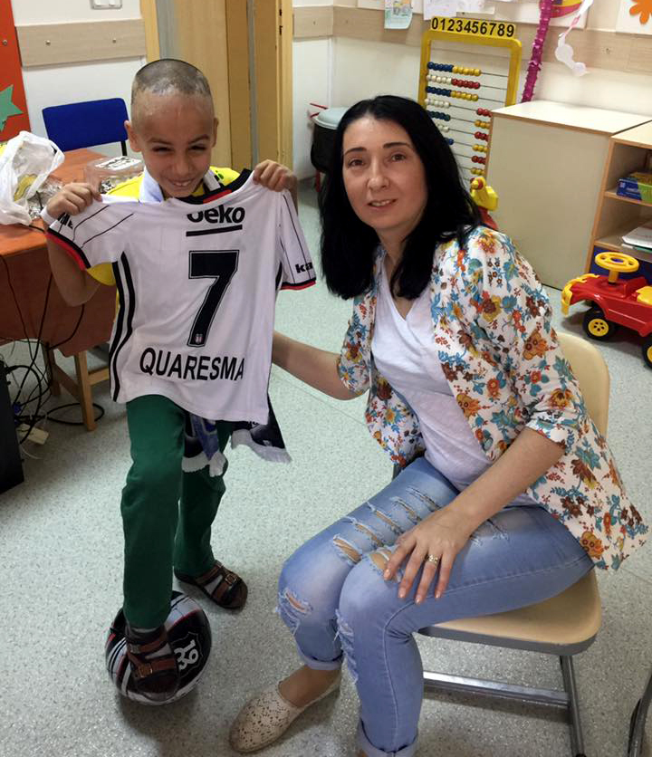 Çeşme Kartalları Beşiktaşlılar Derneği yönetici ve üyeleri, İzmir'de, Ege Üniversitesi Onkoloji Servisi'nde yatan 9 yaşındaki Murat Cesur'a anlamlı bir ziyarette bulunarak, büyük mutluluk yaşattılar.