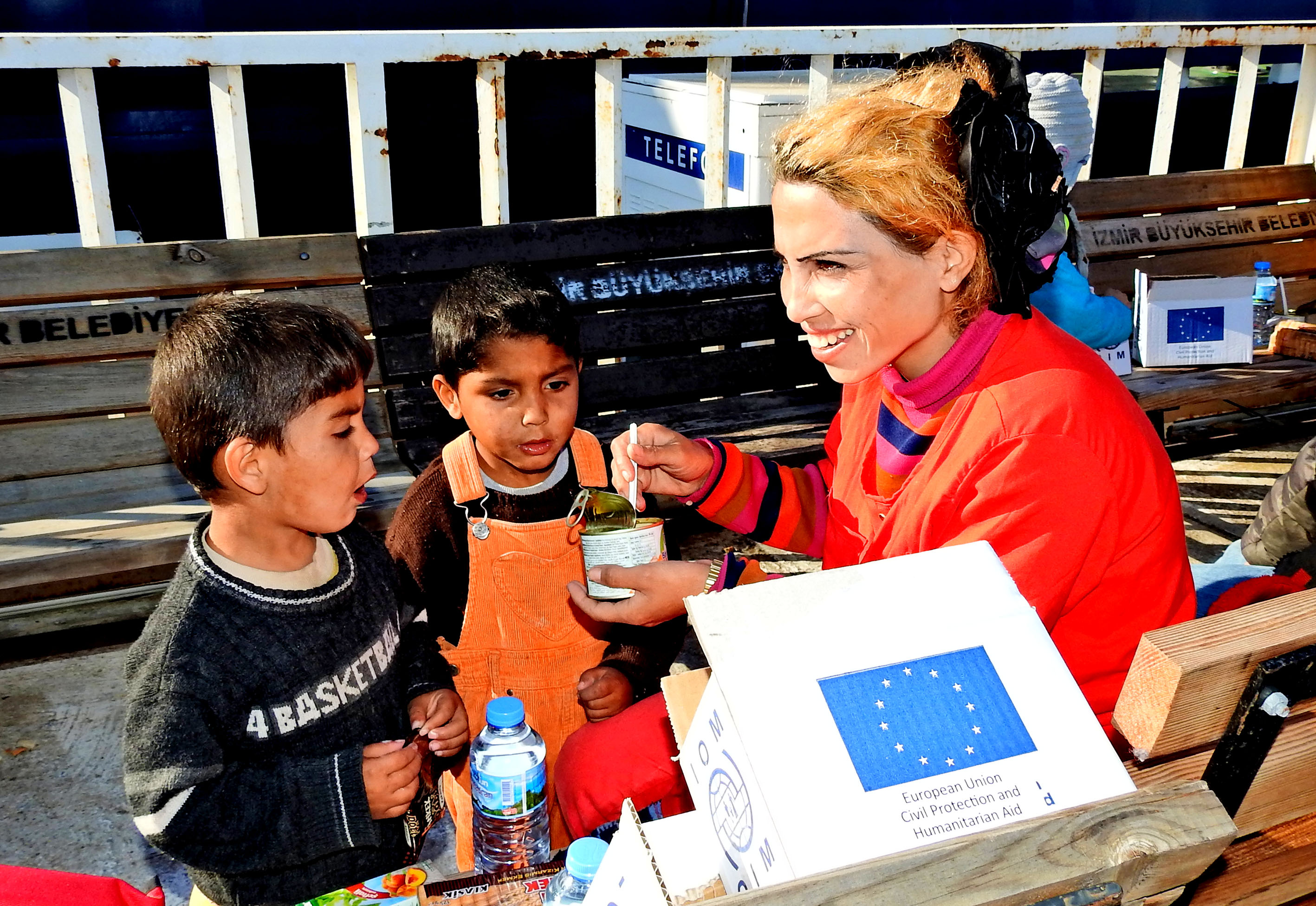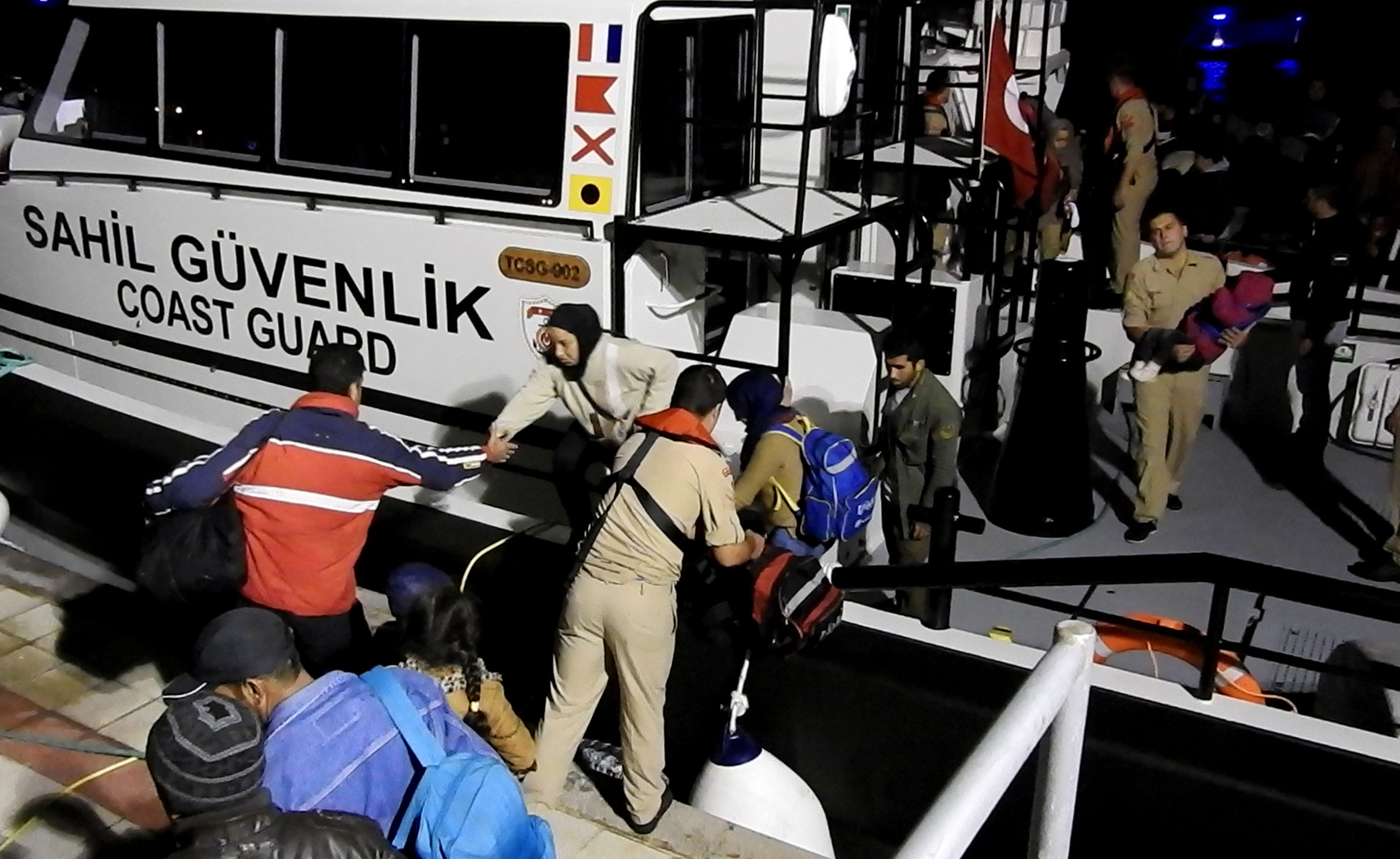 Çeşme iskelesine getirilen, aralarında çok sayıda kadın ve çocuğun da olduğu kaçak göçmenlere, Uluslararası Göç Örgütü temsilcileri tarafından yiyecek ve içecek dağıtılarak insani ihtiyaçları karşılandı.