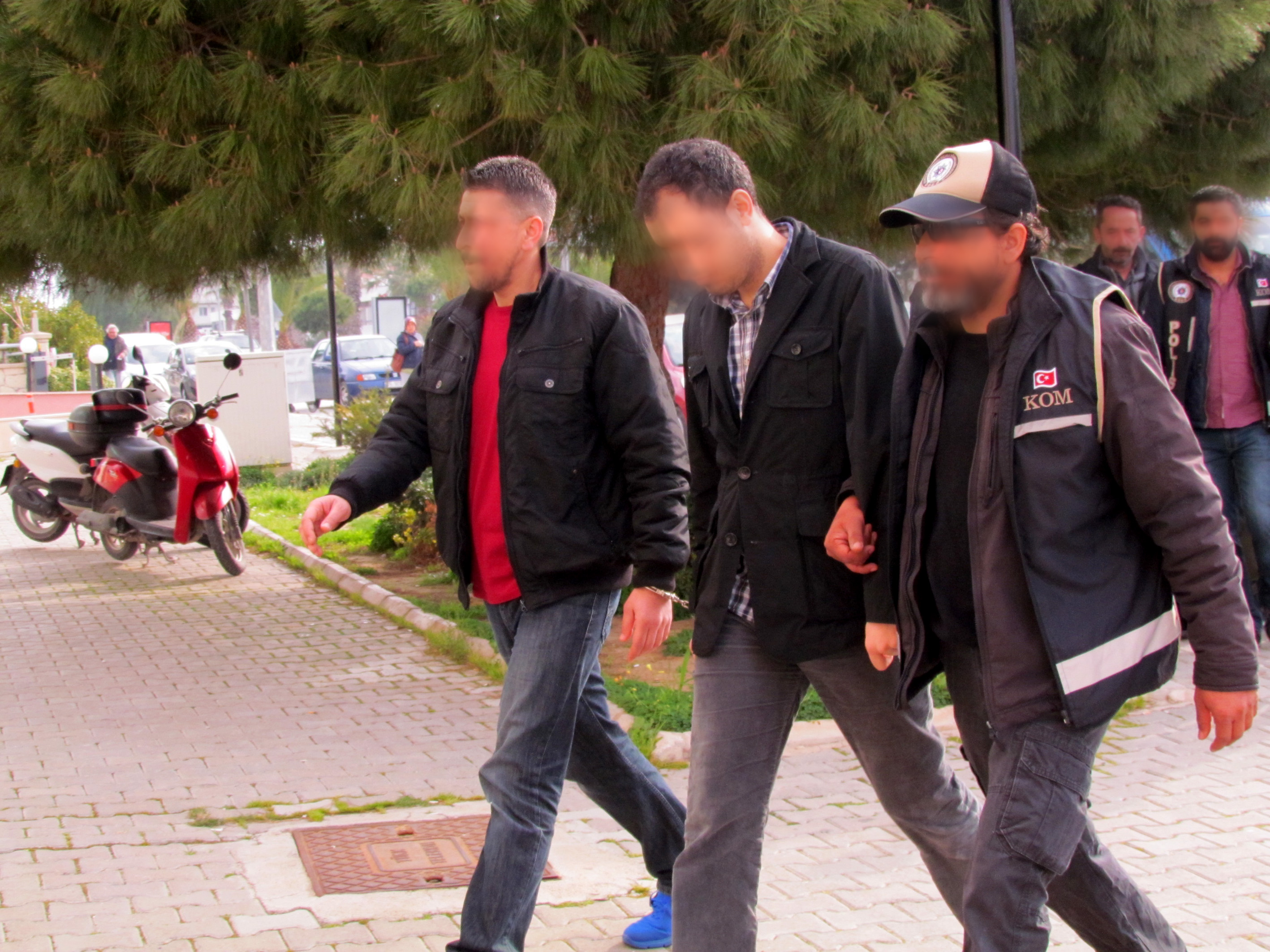 Diğer illerden Çeşme'ye getirilen FETÖ terör örgütü zanlılarından O.K., savcılık talimatıyla adliyeye çıkarılmadan serbest bırakılırken, M.Ö., İ.Ö., A.G, Ü.K., Y.Y. ve M.H.B., Kaçakçılık ve Organize Suçlarla Mücadele (KOM) Çeşme Grup Amirliği'nde sorgulandılar.