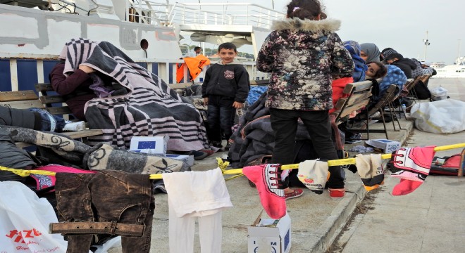 Sahil Güvenlik ekipleri, üşümemeleri için battaniye dağıtırken, Uluslararası Göç Örgütü temsilcisi de yiyecek paketleri ve içecek dağıtarak göçmenlerin ihtiyaçlarını karşıladılar.