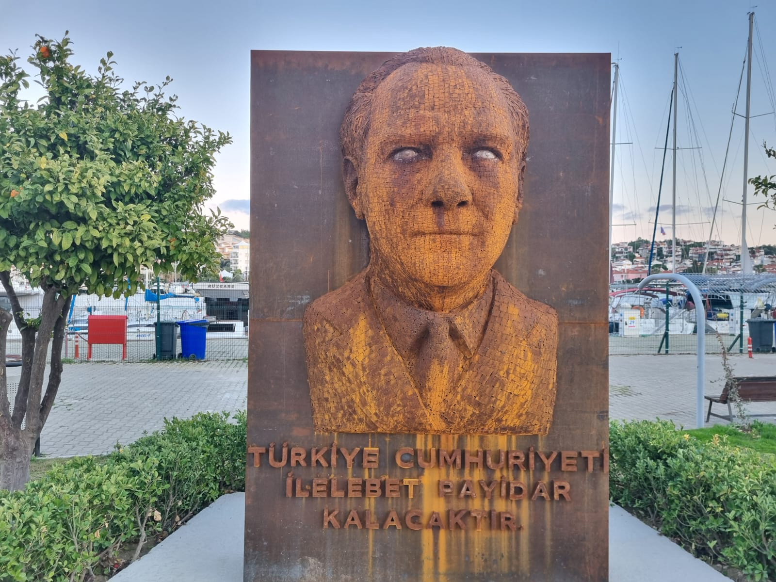Çeşme Belediuesi tarafından 10 Kasım'da Dalyan mahallesinde açılan ve 2 bin 500 metal parçadan oluşan Atatürk heykeli yağmurun da etkisiyle deforme oldu. Atatürk heykelini gören vatandaşlar hem şaşkınlık hem de üzüntü yaşadı.