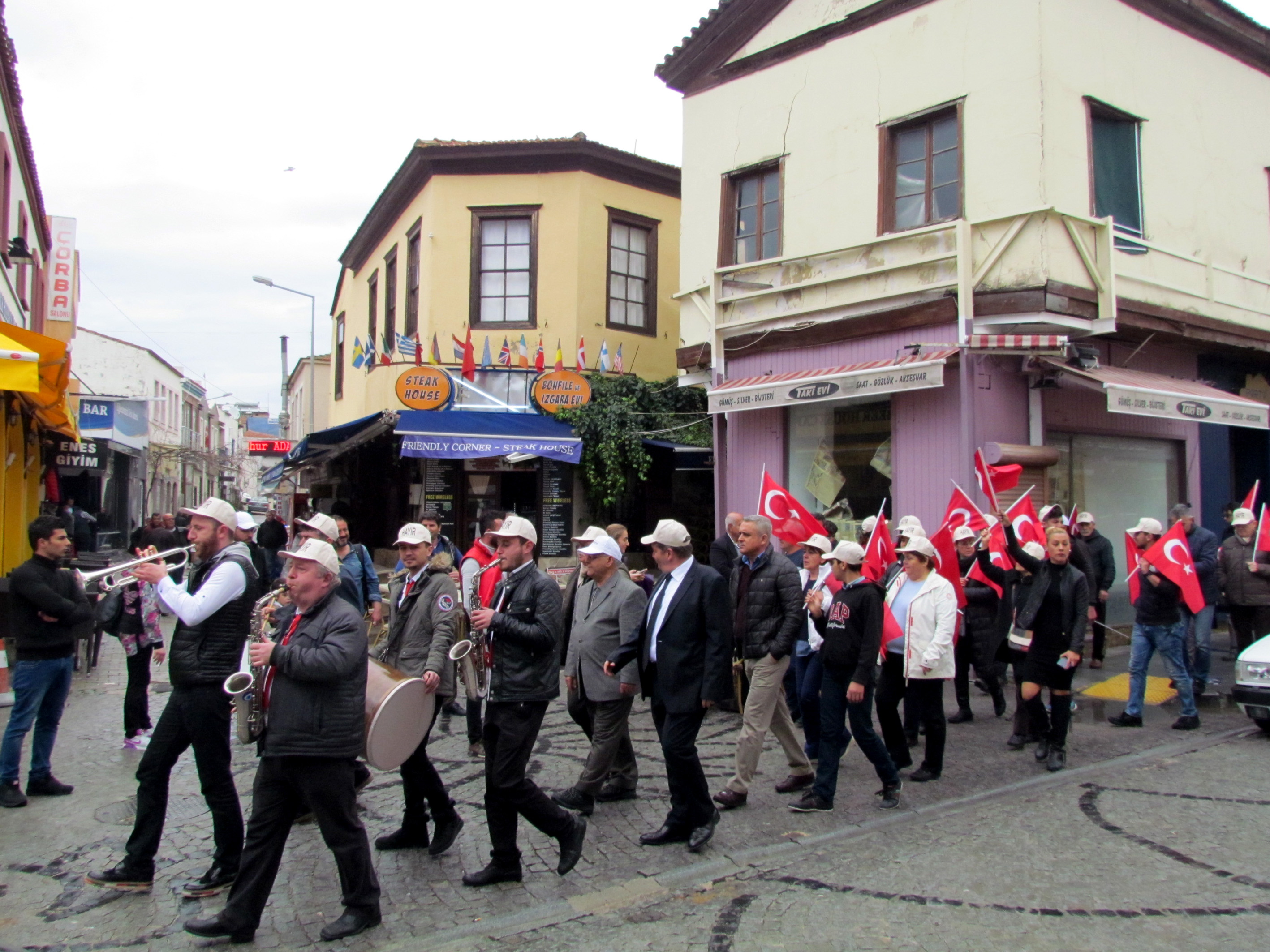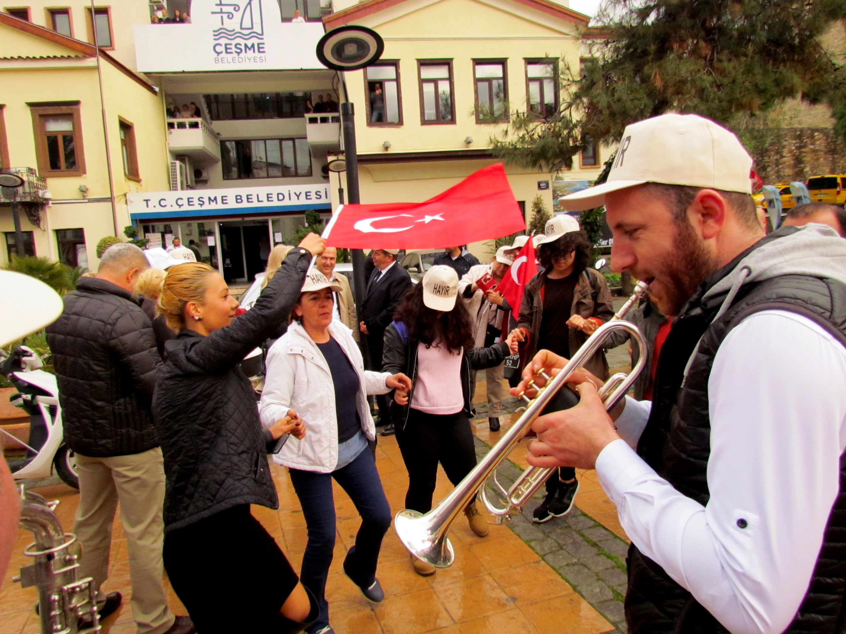 Demokrasi Evi'nin açılışı öncesinde, Milletvekillerinin de katılımıyla, "Hayır Bandosu" eşliğinde Çeşme çarşısında bir yürüyüş gerçekleştirildi.