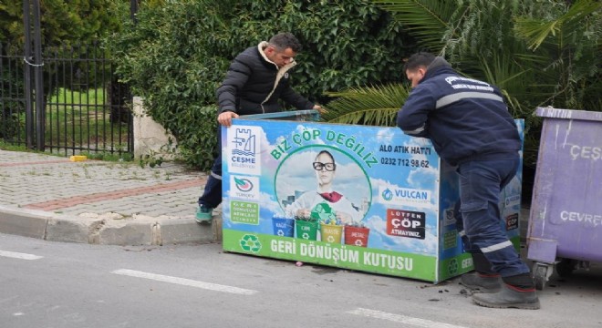 Çeşme Belediyesi; çevre kirliliğinin önlenmesi, atıkların geri dönüşüme kazandırılması amacıyla ilçedeki anaokulu ve ilköğretim kurumları ile nüfusun yoğun olduğu meydan ve alanlara atık toplama kutuları yerleştirdi.