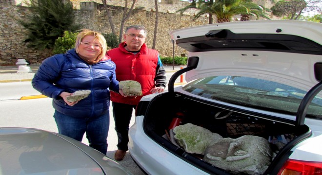 Çeşme'de 4 Şubat Cumartesi günü, aracıyla dolaşırken kırık bir heykel bulan Yeşim Yüksel, aracını durdurarak, heykeli heyecanla incelediğini söyledi.