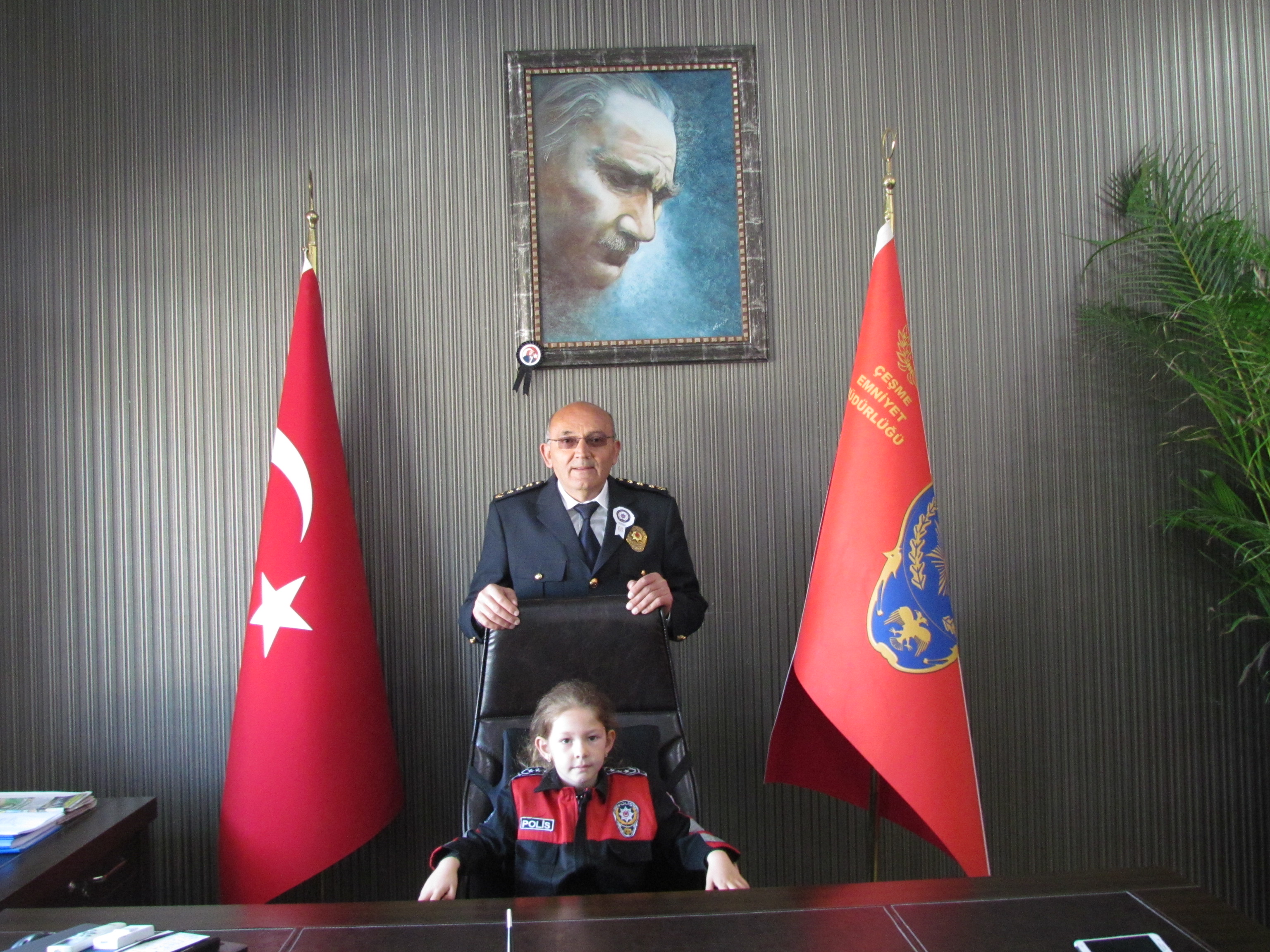Çeşme Kaymakamı Hacı Mehmet Kara, Çeşme Belediye Başkanı Muhittin Dalgıç, İlçe Jandarma Komutan Vekili Teğmen Ahmet Çalışkan ve Sahil Güvenlik komutanları İlçe Emniyet Müdürü Yılmazer'i makamında ziyaret ederek, Polis Teşkilatı'nın kuruluş yıl dönümünü kutladılar.