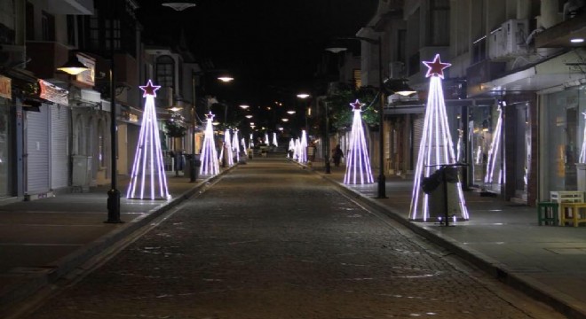 Çeşme Belediyesi, yılbaşı kutlamaları için Çeşme çarşısı ve Alaçatı Mahallesi'ni özel olarak ışıklandırmaya başladı.