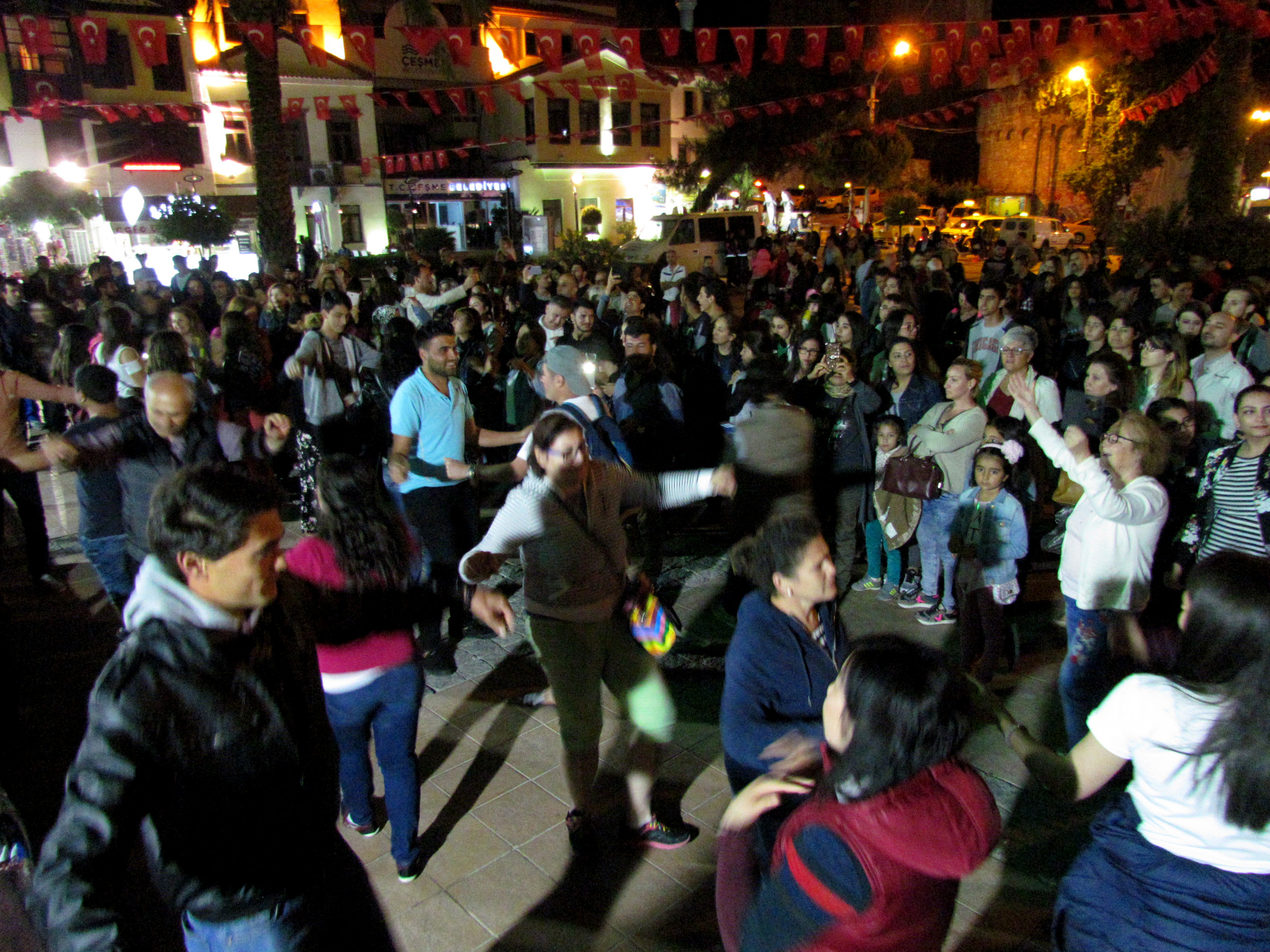 Konserin son bölümündeki oyun havalarında ise coşku zirve yaptı. Cumhuriyet Meydanı'nda konser keyfi yaşayan Çeşmeliler, oyun havalarının ezgilerine kendilerini kaptırarak oyun oynadılar. Çeşmelilerin coşkusu, saz çalıp söyleyen Osman Uysal'a da yansıyınca, sazın tellerinden bir tanesi koptu. Uysal, "Kalan teller eğlenmemize yeter" diyerek saz çalmayı ve Çeşmelileri eğlendirmeyi sürdürdü.