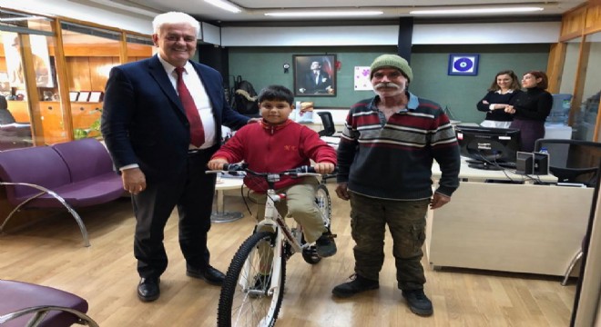 Çeşme Belediye Başkanı Muhittin Dalgıç, Çeşme'nin sevilen faytoncusu Zeki Kara'nın torunu Metehan Üney'e bisiklet hediye etti.