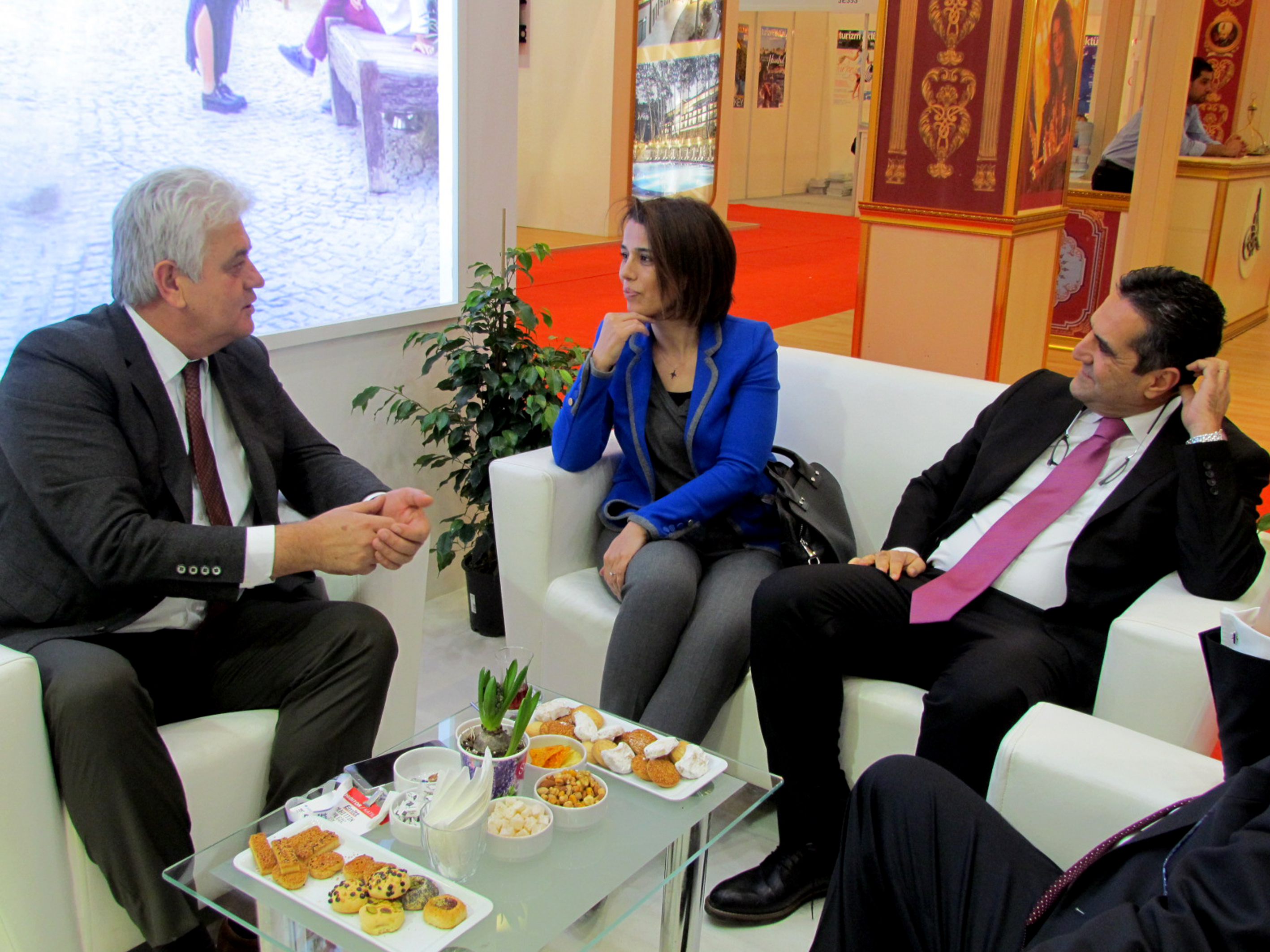 EMITT Fuarı'ndaki Çeşme standına gelerek, Çeşme'nin tanıtımına katkı sağlayan Çeşme Belediye Başkanı Muhittin Dalgıç, Çeşme'de daha önce Kaymakamlık yapan, şu anda Çatalca Kaymakamlığı görevini sürdüren İnci Sezer Becel'i de Çeşme standında ağırlayarak, kendisiyle bir süre görüştü.