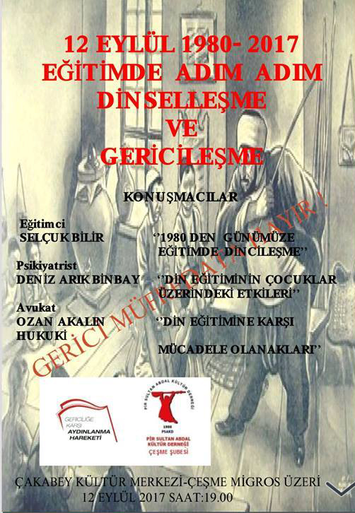 Çeşme Pir Sultan Abdal Kültür Derneği, Eğitimde Adım Adım Dinselleşme ve Gericileşme konulu bir panel düzenliyor.