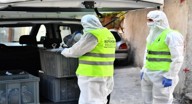 Hastalar İzmir İl Sağlık Müdürlüğü işbirliğinde tespit ediliyor. Tespit edilen hastalar arasında talepte bulunanlara İzmir Büyükşehir Belediyesi’nin iştiraki Grand Plaza’ya ait ekipler yemek dağıtıyor. Büyükşehir ekipleri, koruyucu kıyafetleriyle sosyal mesafe ve hijyen koşullarına dikkat ederek yemekleri kapıya bırakıyor. Taleplere göre yemek dağıtımı diğer ilçelerde de sürecek.