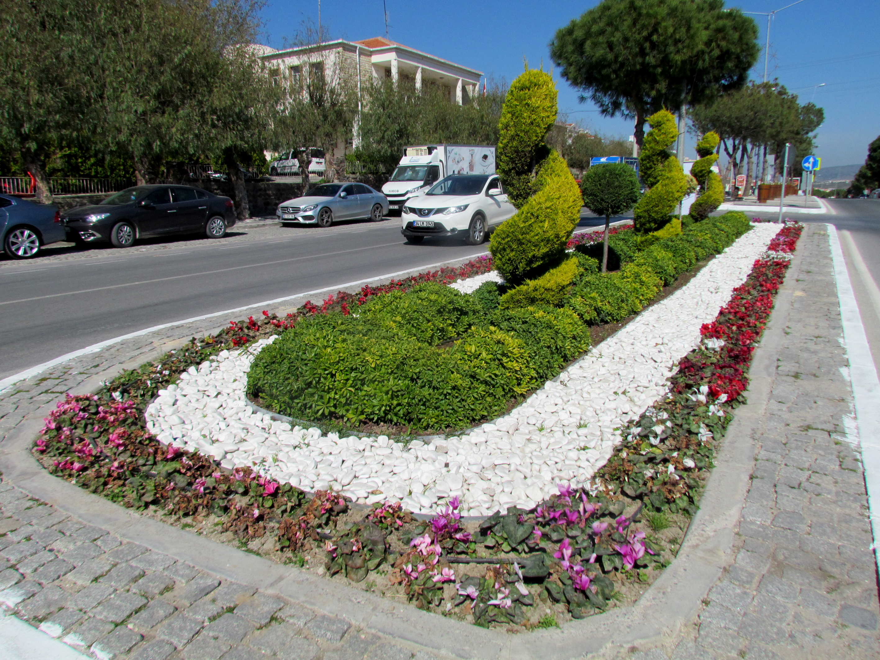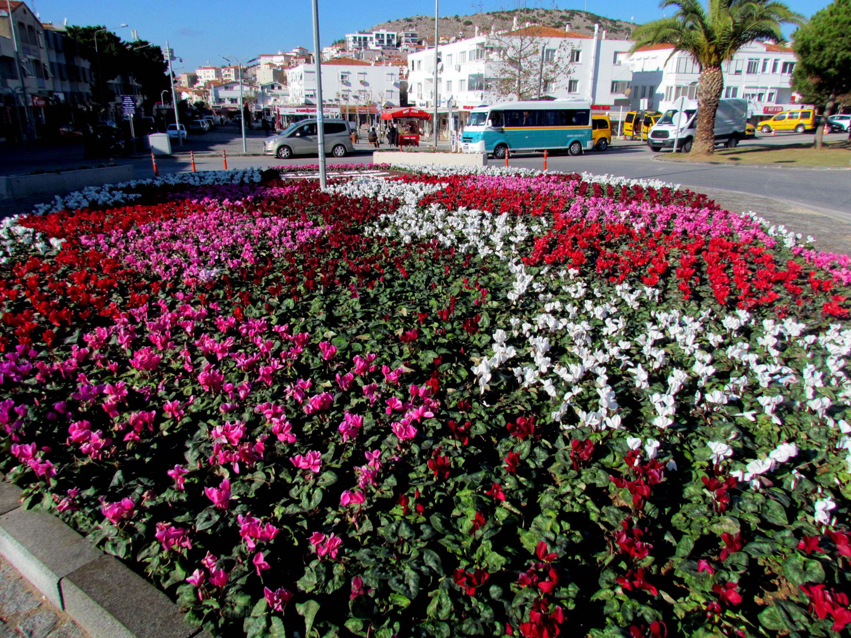 Çeşme'deki refüj ve göbeklerin görsel güzelliğine de önem veren Çeşme Belediyesi, yıl boyunca değişik zamanlarda 60 bin mevsimlik çiçek dikerek Çeşme'nin görünümünü değiştirdi.