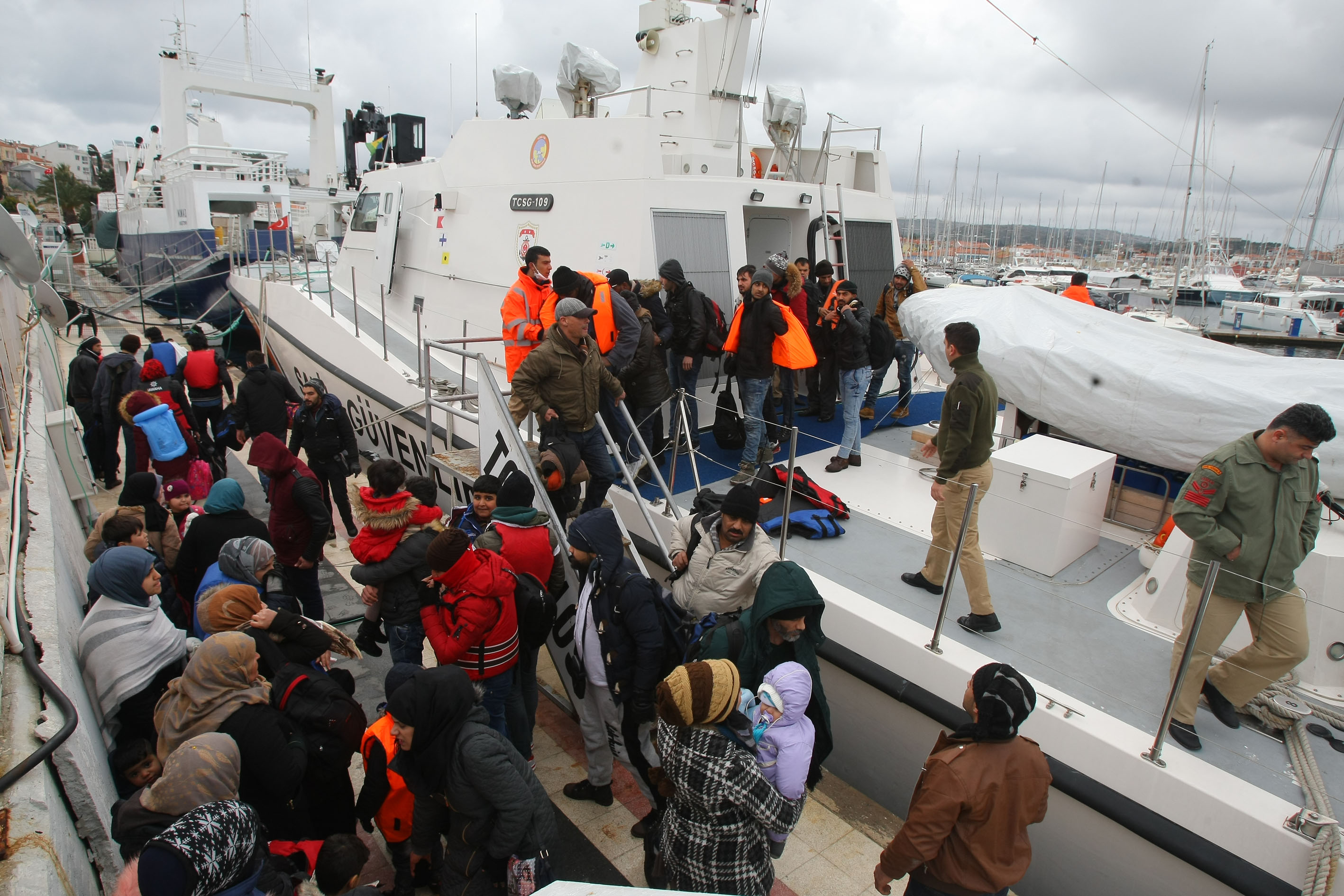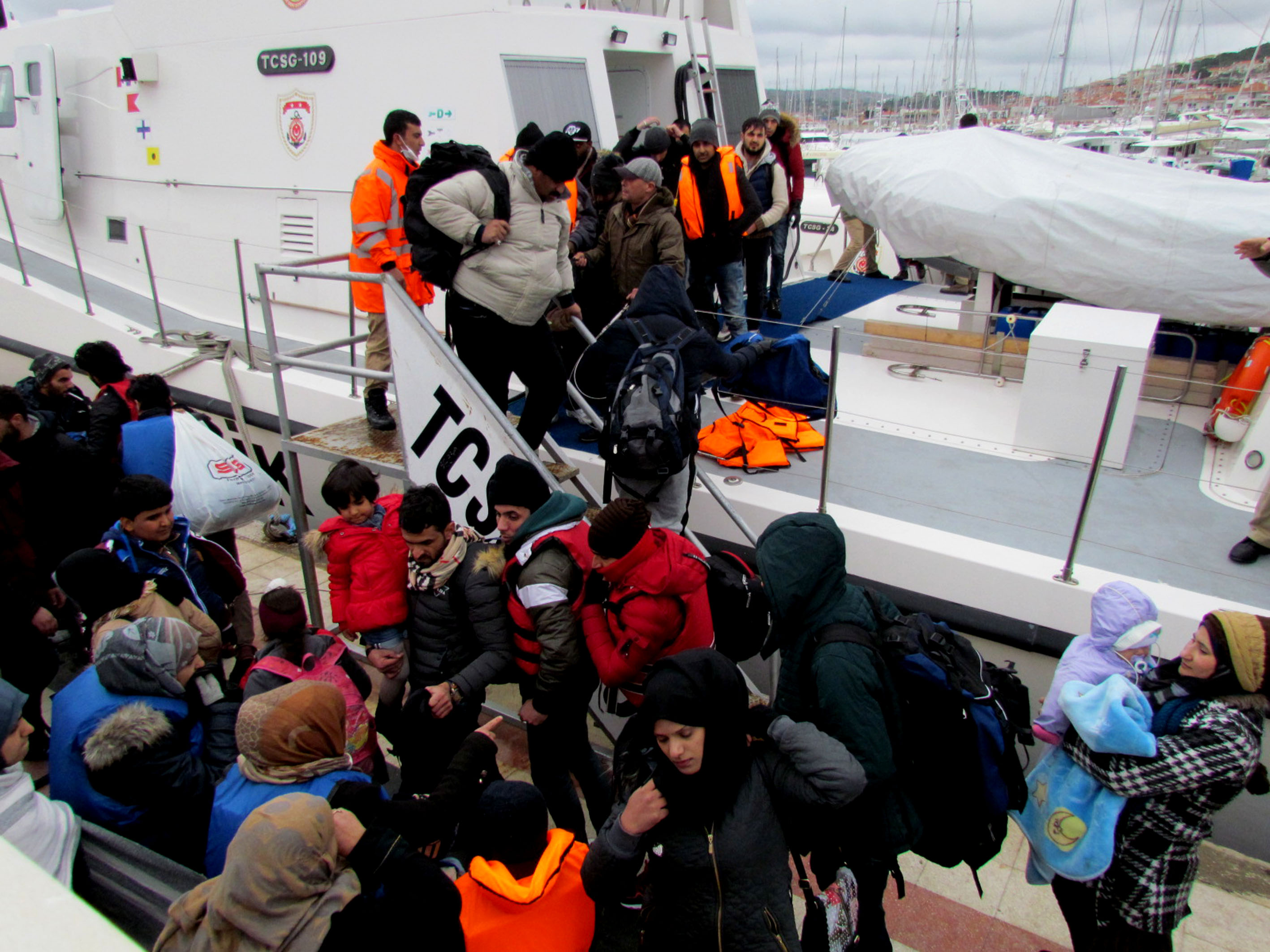 Sığınmacıların arasında bulunan 1'i erkek, diğeri kadın 2 engelli sığınmacı, Sahil Güvenliğin şişme botuyla Çeşme iskelesine getirilerek, Sahil Güvenlik ekiplerinin de yardımıyla iskeleye çıkarıldılar.