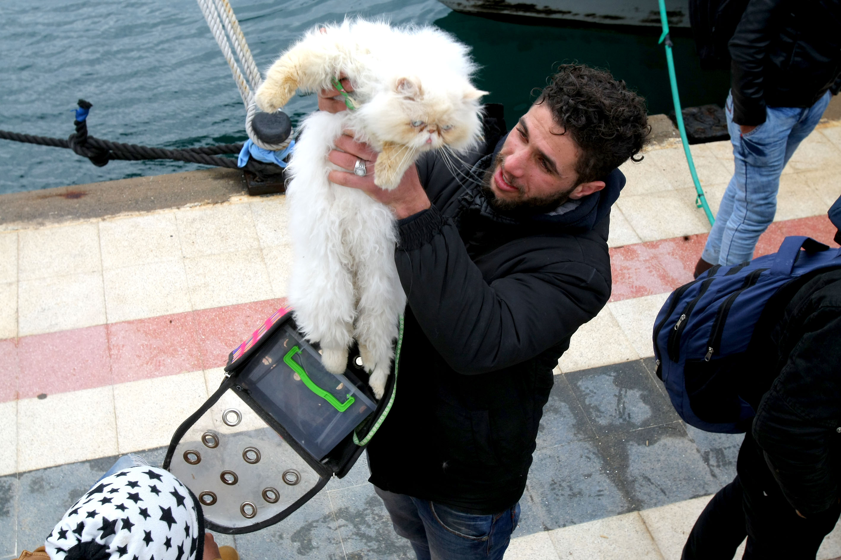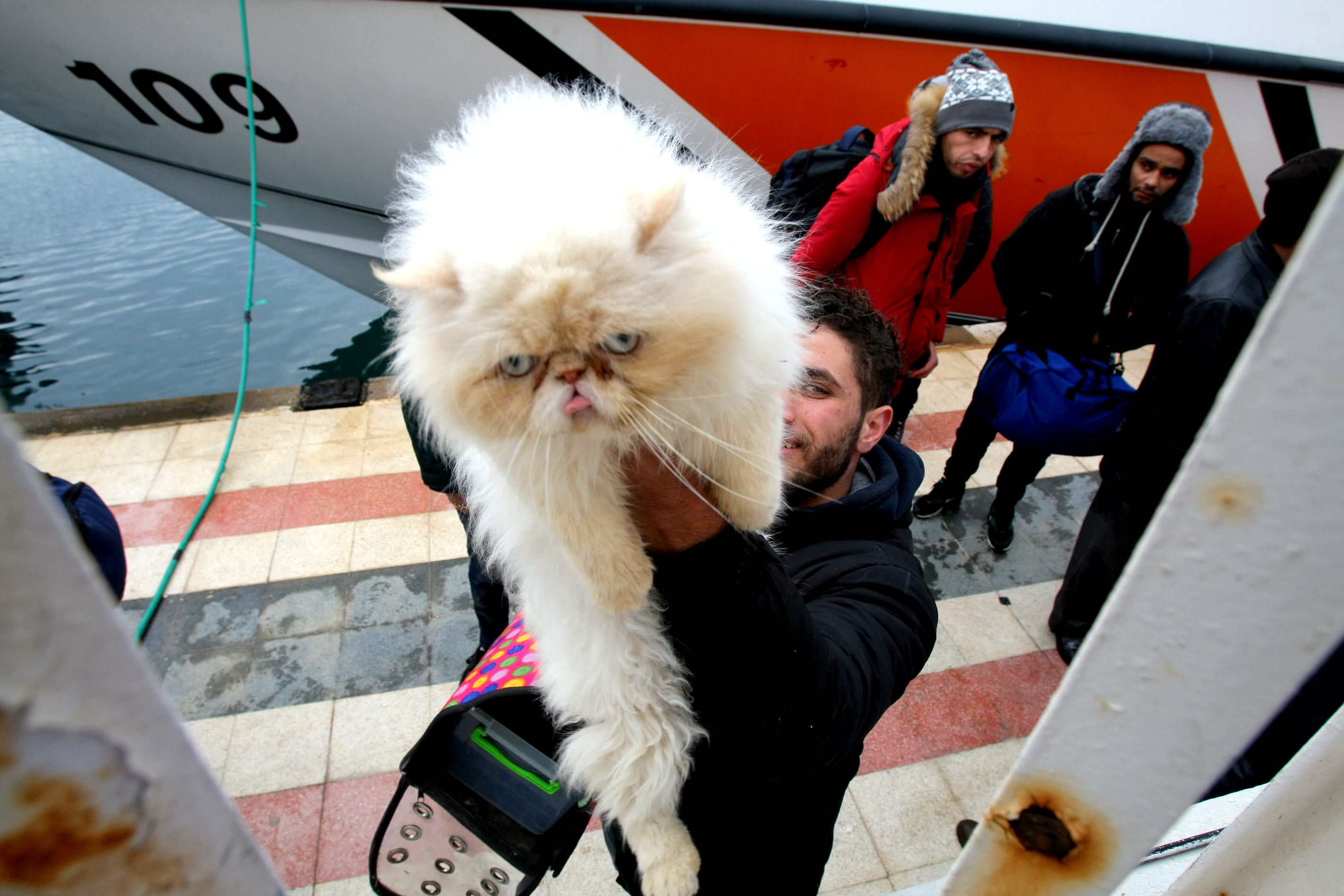 3'ü Kongo, 1'i, Tunus, 58'i de Suriye uyruklu olan sığınmacıların arasında çok sayıda kadın ve çocuğun da olduğu gözlenirken, Suriyeli Tarık Kamci'nin, özel çantası içinde taşıdığı Samba adlı İran kedisi, işlemlerinin tamamlanmasını bekleyen sığınmacıların ilgisiyle karşılaştı. Suriyeli Kamci, özel çantasından çıkardığı Samba'yı kucağında sevip okşarken, diğer sığınmacılar da kediye sevgilerini gösterdiler. Samba, bir anlık da olsa sığınmacılara, hayat ışığı saçtı.