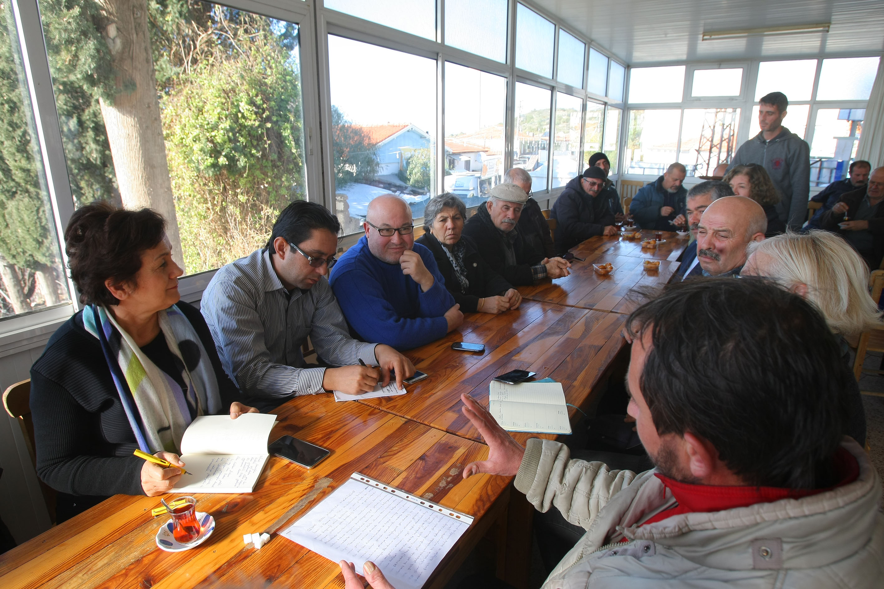 Ildır Mahallesi'ndeki köy kahvesindeki toplantıya, CHP Yüksek Disiplin Kurulu Üyesi, çevreci Avukat Şehrazat Mercan, Ildır Mahallesi Muhtarı Erdem Yavuz, yakıt kirliliğinden en fazla etkilenen Ardıç Mahallesi'nin Muhtarı Eyüp Odabaş, Pir Sultan Abdal Kültür Derneği Çeşme Şubesi Başkanı Sedat Mutlu, Çorumlular Derneği, Çeşme Motosiklet Kulübü, CHP Çeşme İlçe Örgütü ve Vatan Partisi Çeşme İlçe Örgütü temsilcileri ile Ildır bölgesindeki sitelerde oturan sakinler ve çok sayıda Ildırlı balıkçı katıldı.