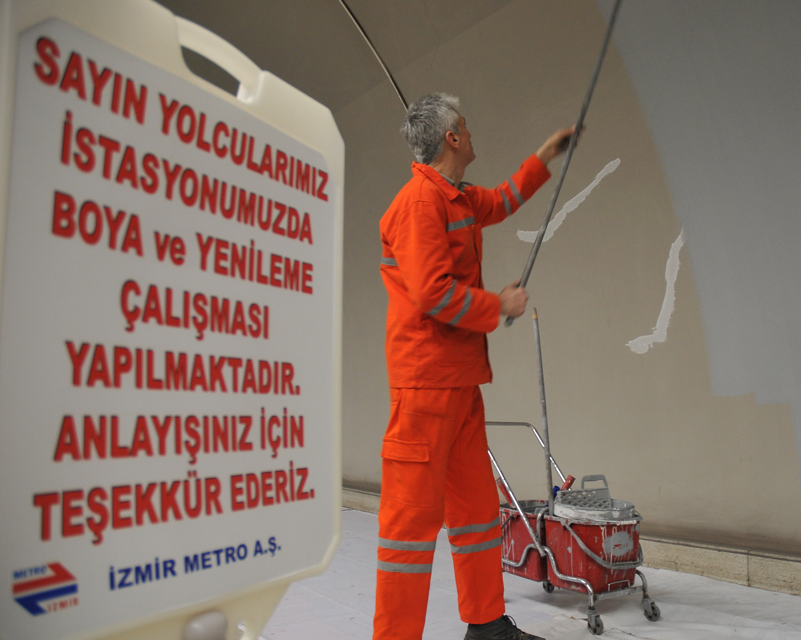 Her gün 350 bin yolcunun kullandığı İzmir Metro sisteminde, işletimi aksatmayacak, yolcu akışını ve konforunu bozmayacak şekilde, ağırlıklı olarak sefer dışı saatlerde sürdürülen yenileme ve tadilat çalışmaları öncelikle sistemin en eski istasyonlarında başlatıldı. Üçyol, Konak, Çankaya ve Basmane istasyonlarında eş zamanlı yürütülen işlerde, her boya çalışmasında olduğu gibi önce duvarlara astar çekilerek zemin düzleştiriliyor ve ardından boya işlemi gerçekleştiriyor. Duvarlar, merdiven altları, teknik odalar da yenileme faaliyeti kapsamında elden geçiyor, tüm istasyonlar daha temiz temiz ve pırıl pırıl bir görünüme kavuşuyor.