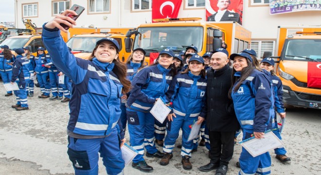 İzmir Büyükşehir Belediye Başkanı Tunç Soyer, yeni kadın personelin meslek sertifikalarını dağıtarak, görevlerinde başarılar diledi. Başkan Soyer’e İZSU Genel Müdürü Aysel Özkan eşlik etti. Kadınları teker teker tebrik eden Başkan Soyer, her alanda cinsiyet eşitliği ilkesiyle hareket ettiklerini belirterek “Arkadaşlarımızın her biri ağır vasıta şoförlüğünün yanı sıra iş makinesi kullanma sertifikalarını da aldılar. Meslek Fabrikası’nda gördükleri eğitim sonrasında bu ağır işlerde çalışmaya başlayacaklar. Her biriyle çok iftihar ediyorum. Sadece kendileri için değil, bütün Türkiye’deki genç kadınlar için örnek olacak bir çalışma yapmış oldular. Artık İzmir’in altyapısında kadın eli, kadın emeği daha fazla olacak. Bu nedenle çok mutluyum” diye konuştu.