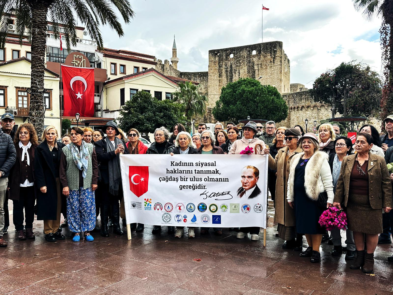 “Atatürkçü Düşünce Derneği Çeşme Şubesi, çeşitli sivil toplum kuruluşları ve Çeşme Kent Konseyi olarak; kadının toplumsal, siyasal ve ekonomik hayatta eşit, özgür ve güçlü bireyler olarak yer alması için ortak bir irade ve dayanışma içinde olduğumuzu bir kez daha kamuoyuna duyuruyoruz.” Buldan ayrıca, kadın devrimlerine kararlılıkla sahip çıkacaklarını ve kadına yönelik şiddetin her türüne karşı sıfır tolerans politikasıyla mücadele edeceklerini vurguladı.