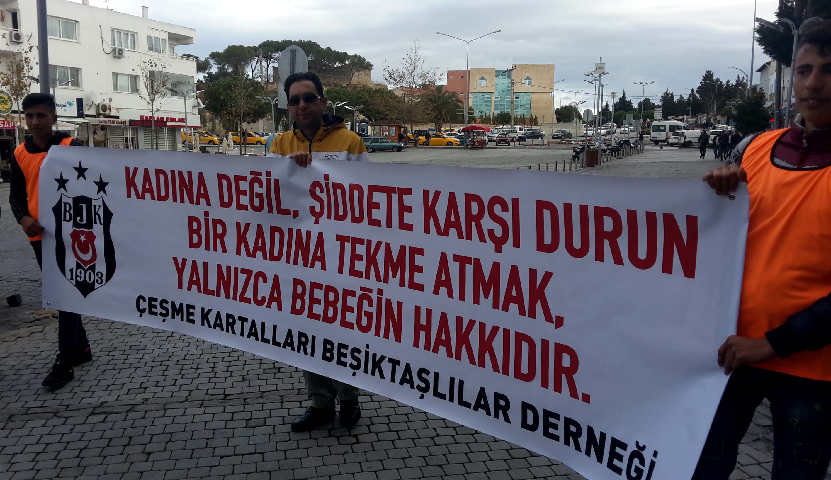 Söz konusu kampanya kapsamında da Çeşme Kartalları Beşiktaşlılar Derneği tarafından bir yürüyüş ve basın açıklaması organize edildi. 10 Aralık Pazar günü Çeşme çarşısı girişinde toplanan bir grup vatandaş, Çeşme çarşısında bir yürüyüş gerçekleştirdi. Yürüyüşe, Pir Sultan Abdal Kültür Derneği Çeşme Şubesi Başkanı Sedat Mutlu da bir süre katılarak destek verdi.