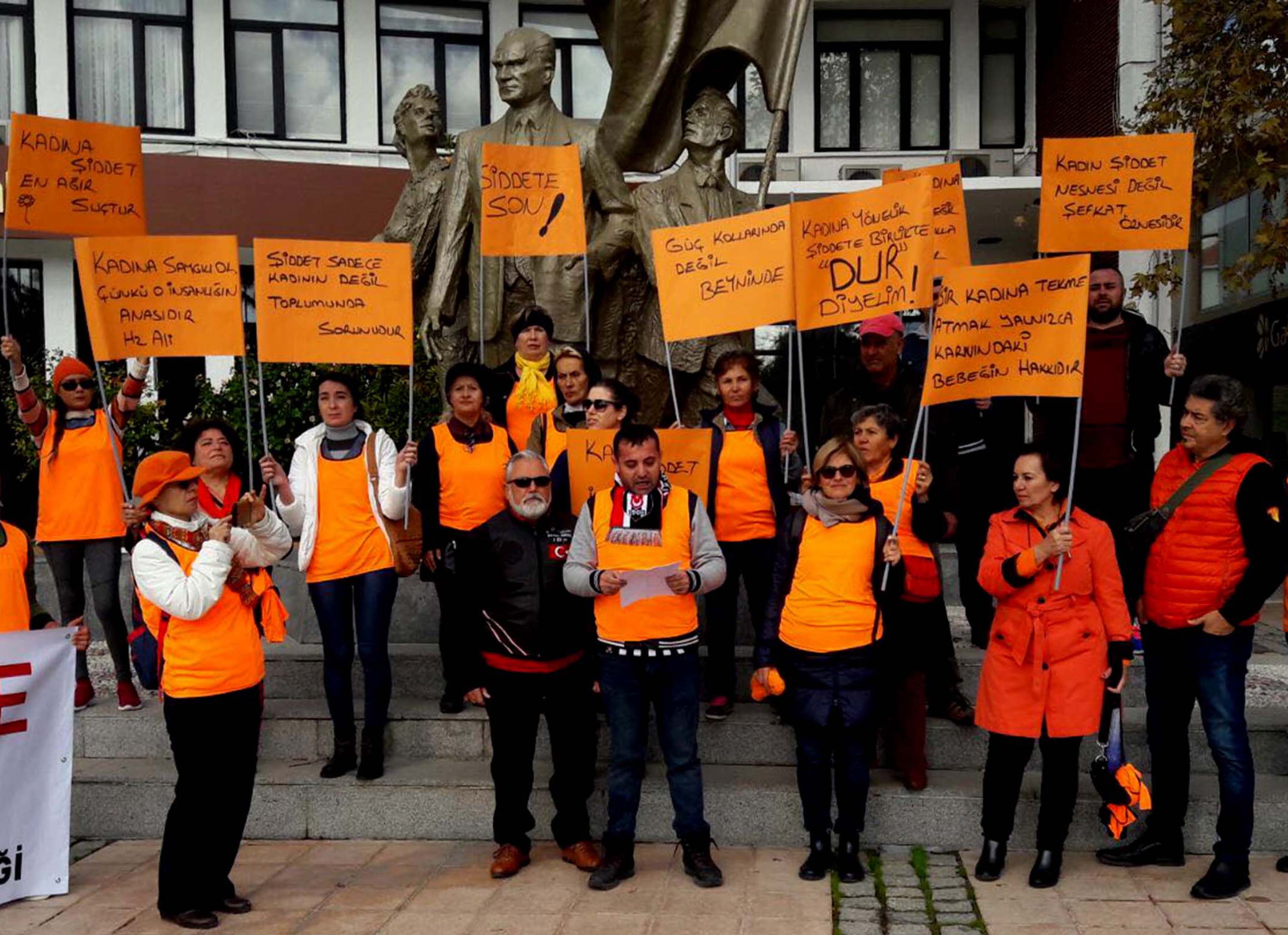 "Sevgileriyle hayatlarımızı yeşerten, umudumuza umut, huzurumuza huzur katan, kutsal bildiğimiz güzelliklere ruhunu adayan, ailesinin mutluluğuna kol kanat geren fedakar kadınlarımız, el emeğinin göz nurunun sahibi yürekli yol arkadaşlarımızdır. Kadınlara ve kız çocuklarına karşı yapılan şiddete 'Hayır' diyoruz. Şiddet, kadınların ve kız çocuklarının yaşamlarını olumsuz etkileyen, temel hak ve özgürlüklerini ihlal eden bir insanlık suçudur. Hangi yasayı getirirsek getirelim, ailede ve toplumda yetiştirilme sorunları aşılmadan, temel eğitimde, hatta ana sınıfında bu yönde eğitim verilmeden, toplumsal cinsiyet eşitliği sağlanmadan, yasaların bir anlamı kalmamaktadır. Kadınlara karşı büyüyen şiddet ve fiili saldırıların önüne geçilememektedir. Toplumdaki her birey, kadınlara ve kız çocuklarına yönelik şiddet olaylarının önlenmesi için mücadele etmeli, yöneticilerin de şiddet olaylarını önlemeye yönelik politikalarında kararlılık ve tutarlılık göstermeleri gerekmektedir. Toplumda ve aile içinde kadınlara yönelik şiddete karşı, her bireyin duyarlı, bilinçli ve kararlı olması gerektiği kanaatindeyiz. Kadınların kendilerine yönelik şiddete karşı yalnız olmadıklarını ifade etmek için buradayız"