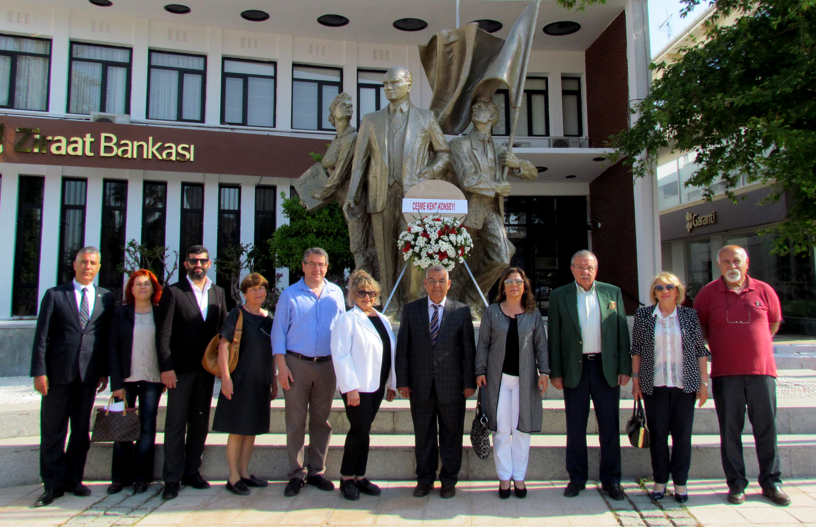 Çeşme Kent Konseyi Başkanı Ömer Önal, Genel Sekreteri Ramazan Çınar ve Yürütme Kurulu üyeleri Berna Güler, Arda Gönül, Suzan Çırağ, Sebahat Poshor, Sedat Mutlu, Veysel Ayhan, Sabise Suna Tamer, Rasim Özgül, İsmail Porsuk ile Engelliler Meclisi Başkanı Pınar Foral, nezaket ziyaretinden önce Cumhuriyet Meydanı'ndaki Atatürk Anıtı'na çelenk koyarak saygı duruşunda bulundular. Çeşme Belediye Başkan Yardımcısı Şakir Karadede de, Kent Konseyi Yürütme Kurulu üyeleri ile birlikte çelenk koyma törenine katıldı.