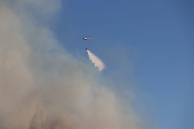 Yangım için havalanan söndürme uçakları şiddetli rüzgar nedeniyle denizden su alamadılar, Tahtalı Barajını kullandılar.