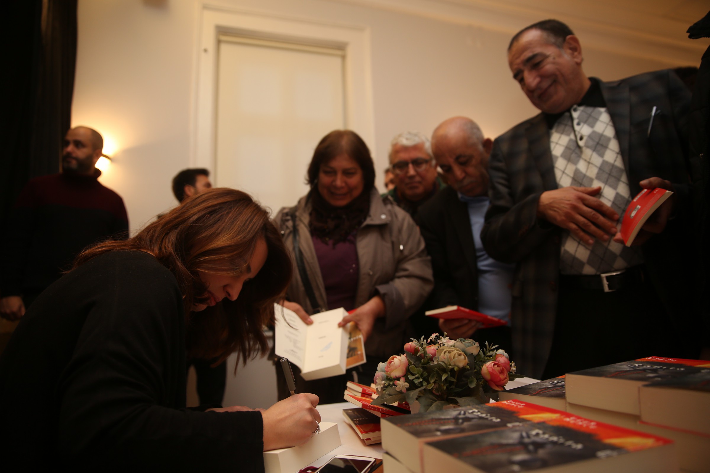 Söyleşinin ardından Özge Mumcu, babasının kitaplarını imzaladı.