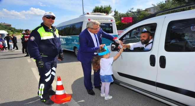 Ana Okulu içindeki bilgilendirmenin ardından, törene katılan protokol üyeleri ve minik öğrenciler, okulun önündeki yolda bulunan yaya geçidinde, karşıya geçebilmek için trafiği durdurdular. Minik öğrenciler, şoför amcalarına, yaya geçitlerinde geçiş önceliğinin yayalara ait olduğunu hatırlatarak, çiçek verdiler.