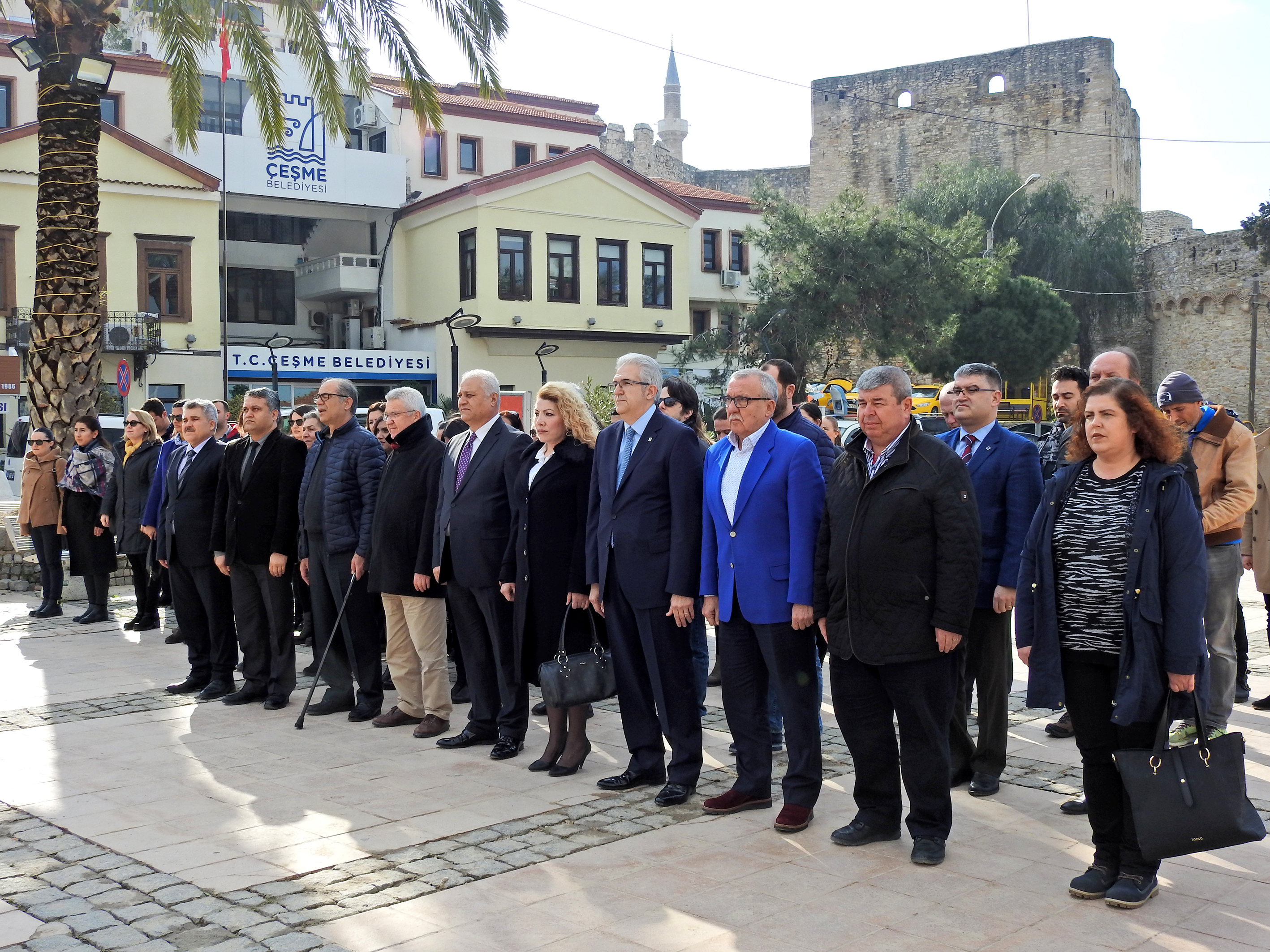 SMMMO Çeşme Temsilcisi Hakan Güvener'in Atatürk Anıtı'na çelenk koymasıyla başlayan kutlama töreni, saygı duruşu ve İstiklal Marşı'nın okunmasıyla devam etti.