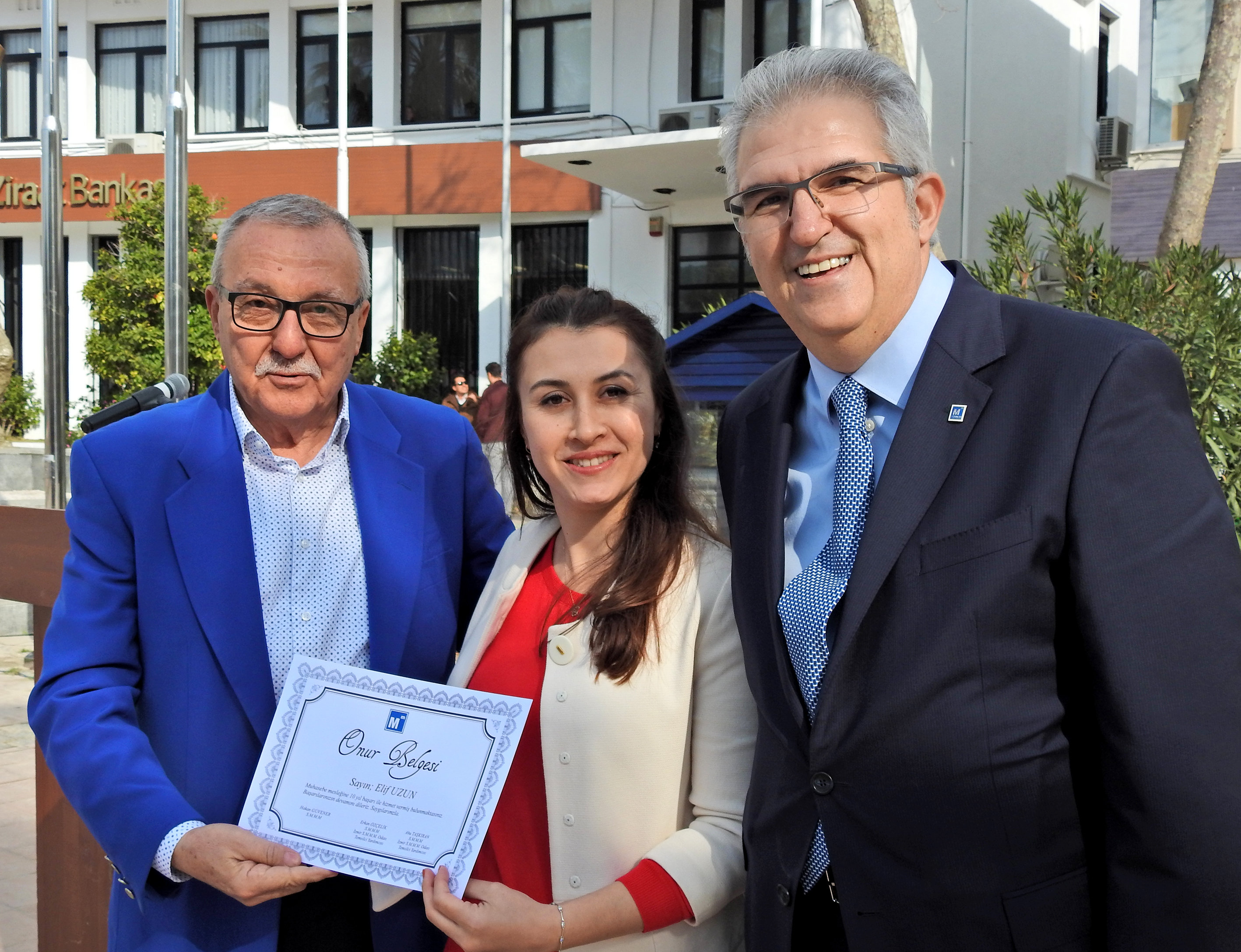 Konuşmanın ardından, muhasebe mesleğinde 10-15 yıl arası çalışan personele Onur Belgesi dağıtıldı. Tören, Atatürk Anıtı'nın önünde toplu fotoğraf çekilmesiyle sona erdi.