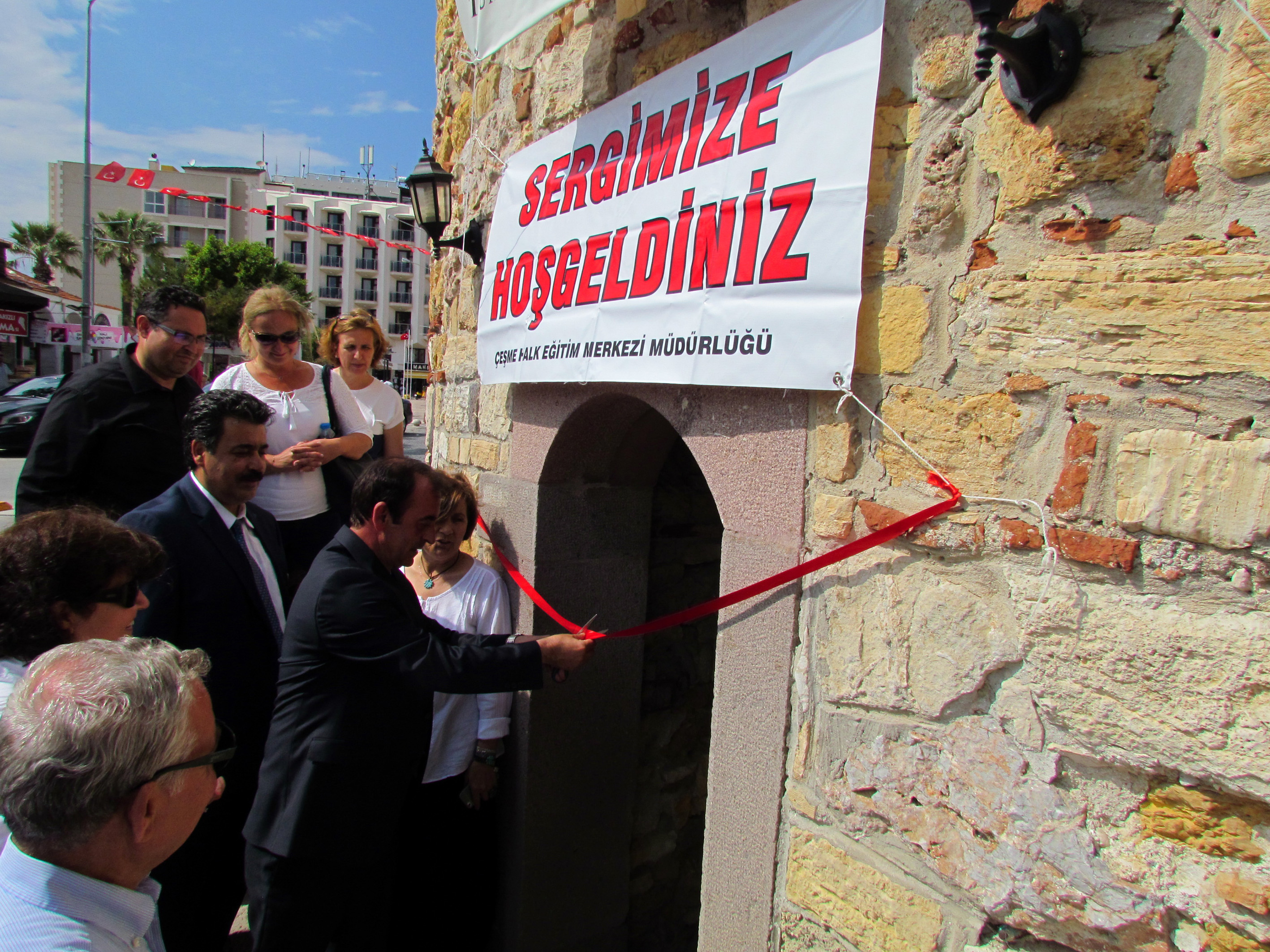 Çeşme Halk Eğitim Merkezi Müdürlüğü kursiyerlerinin eserlerinin sergilendiği serginin açılışına Çeşme Kaymakamı Hacı Mehmet Kara, İlçe Milli Eğitim Müdürü Ahmet Vehbi Koç, Çeşme Müze Müdürü Sevgi Soyaker ve vatandaşlar katıldı.