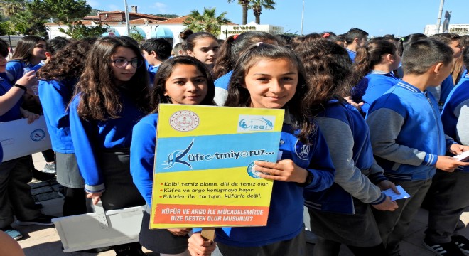 Çeşme Milli Eğitim Müdürlüğü'nün başlattığı Çeşme Eğitiminde İzleme Geliştirme ve İnovasyon Projesi (ÇİZGİ) kapsamında, toplumda giderek yaygınlaşan küfürlü ve argo konuşmanın önüne geçilmesi amacıyla bir proje hazırlayan Sıdıka Kelami Ertan Ortaokulu, farkındalık yaratmak amacıyla bir yürüyüş düzenlediler.