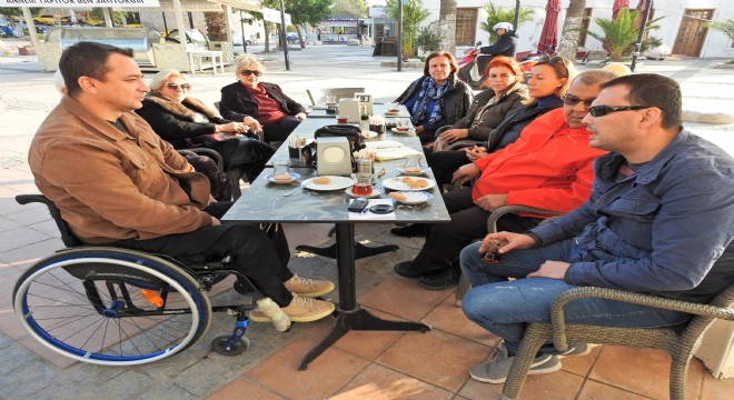 Çeşme Kent Konseyi Başkanı Ömer Önal, Engelliler Meclisi Başkanı Pınar Foral, Kadın Meclisi Başkanı Berna Güler ve Çocuk Meclisi Başkanı Suzan Çırağ ile birlikte bir araya geldiği engellilerle söyleşerek sorunlarını dinledi.