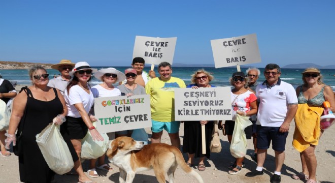 “Çeşme bizim evimiz” sloganıyla, kirletmemenin temizlikten daha önemli olduğu bilincini geliştirmek amacıyla plaj temizliği yapan Çeşme Belediye Başkanı M. Ekrem Oran, doğa ve çevre dostu gönüllüleri Atakent Inner Wheel (Sevgi Çemberi) Kulübü ile birlikte 1 Eylül Dünya Barış Günü’nde Reisdere Ada Plajı’nda çöp topladı.